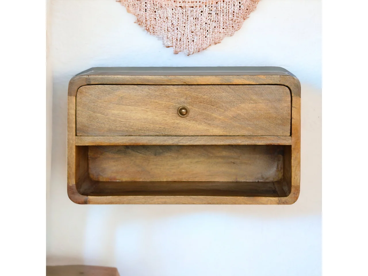 Schwebender Nachttisch Curve von Artisan Furniture, offenes Fach, 1 Schublade, hellbraun