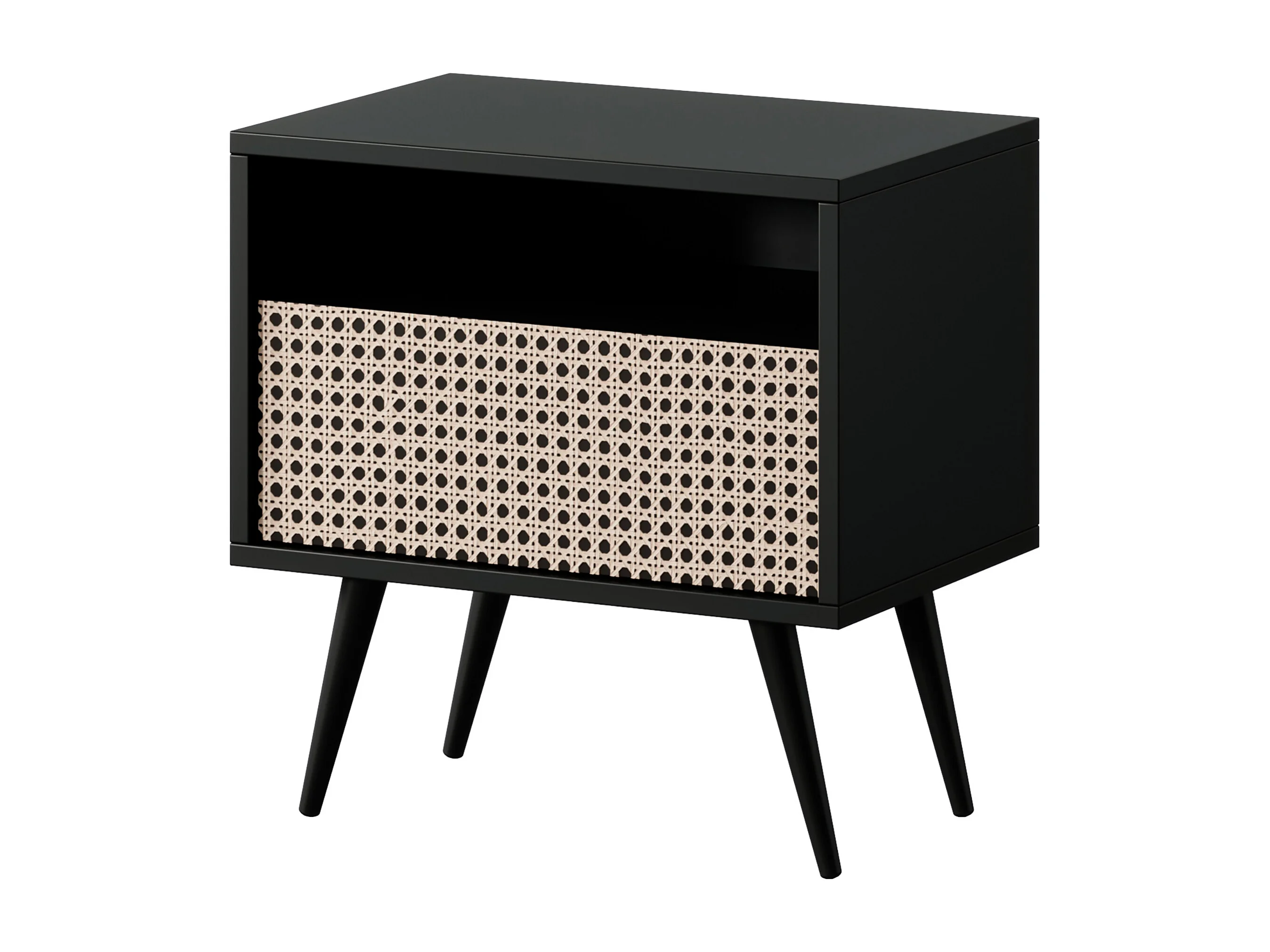 Nachttisch mit Schublade - Wiener Flechtmuster, schwarze Beine - Bello