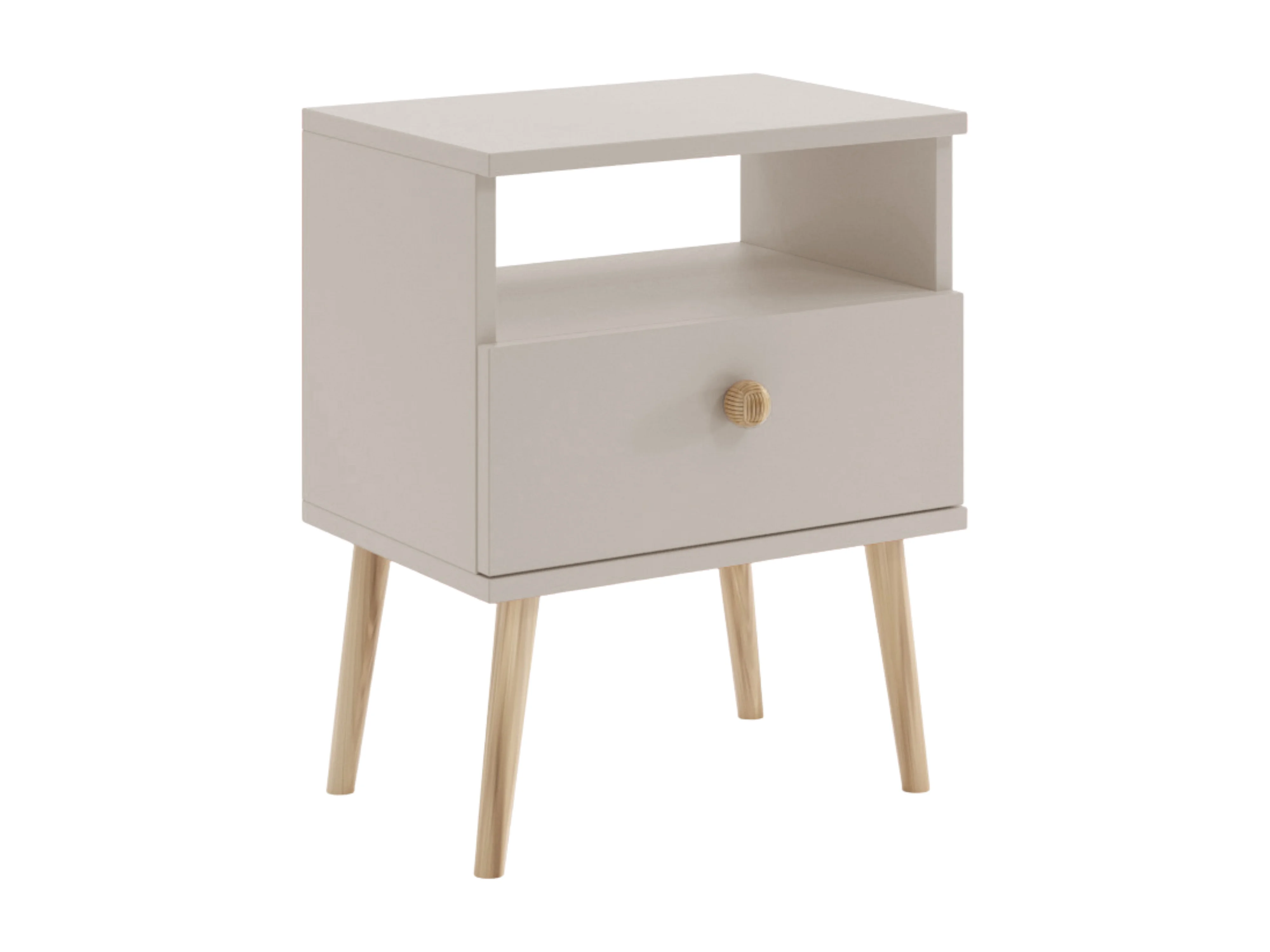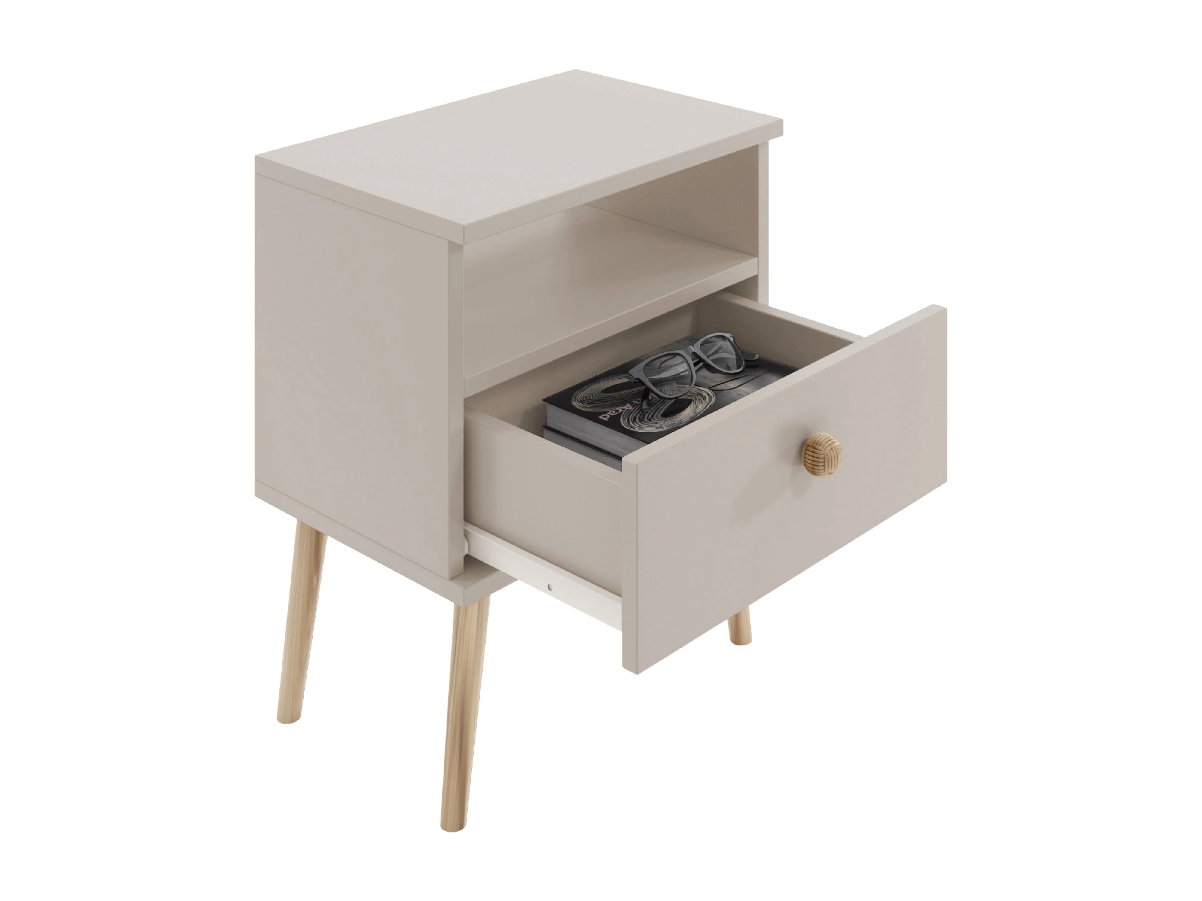 Nachttisch NATURA Kaschmir Hellgrau 44x31 cm mit Schublade und Juteseil-Griff im Skandinavischen Stil
