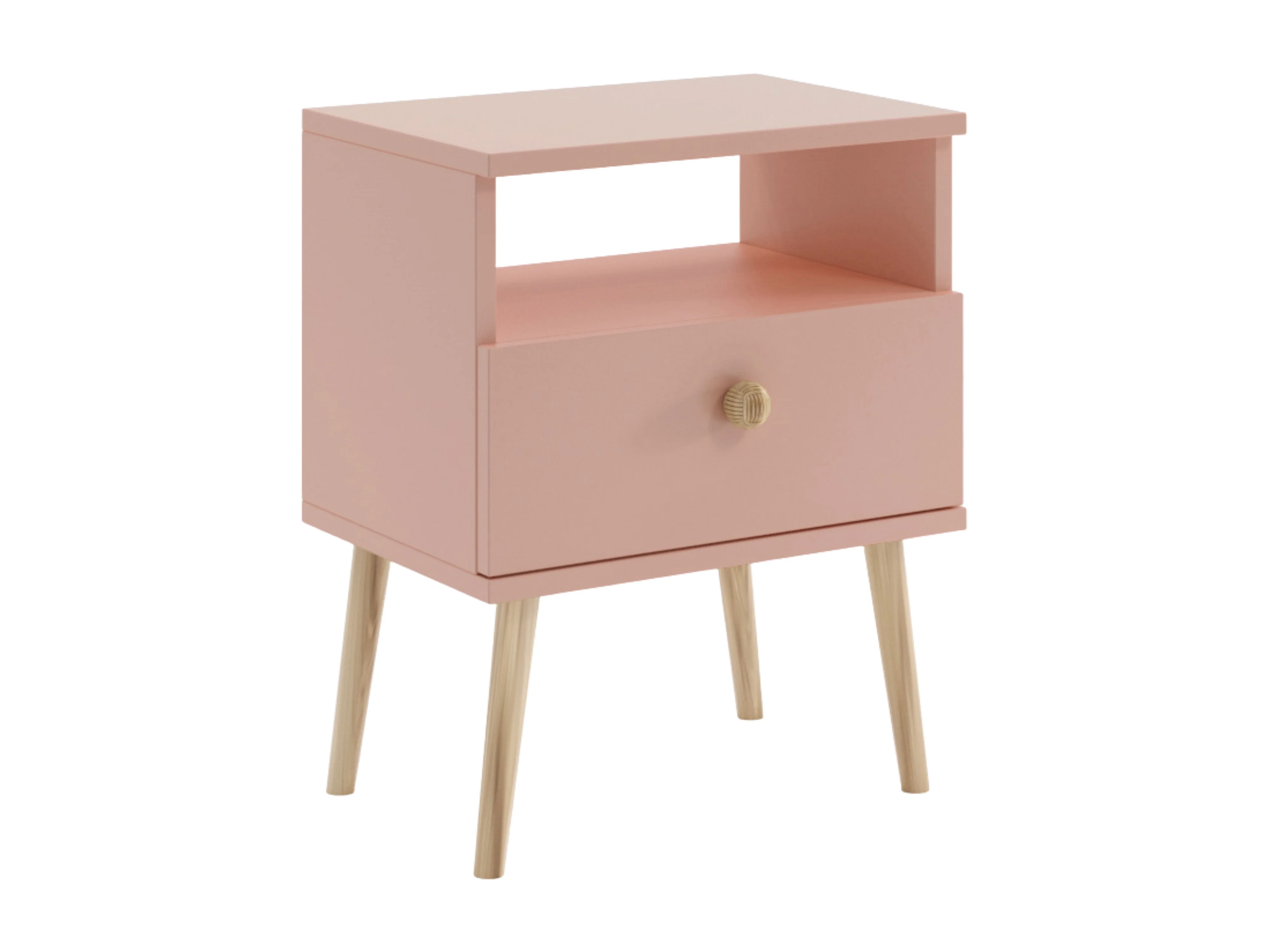 Nachttisch NATURA Rosa Pastell 44x31 cm mit Schublade und Juteseil-Griff im Skandinavischen Stil