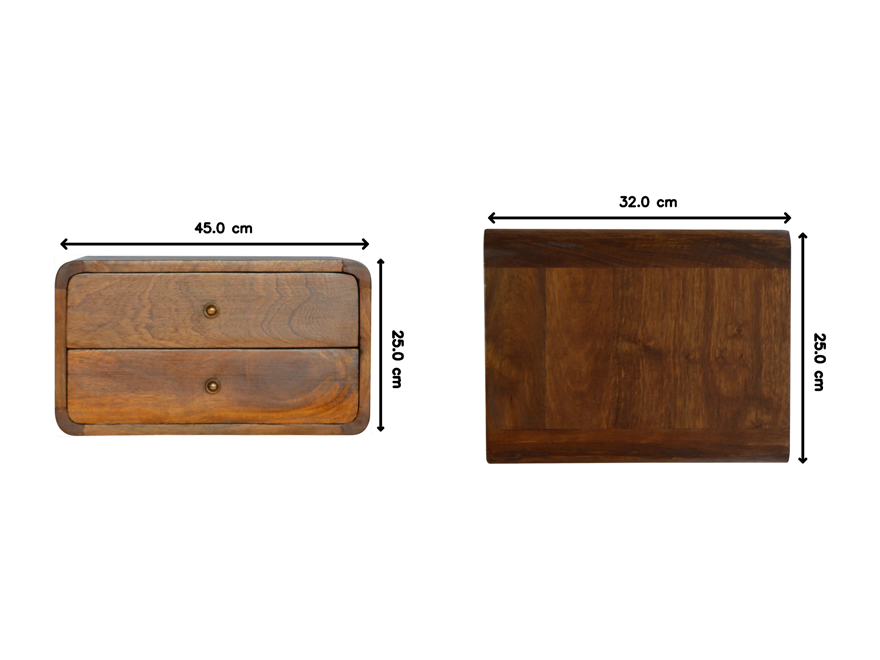 Geschwungener schwebender Nachttisch aus Kastanienholz von Artisan Furniture, 2 Schubladen, hellbraun