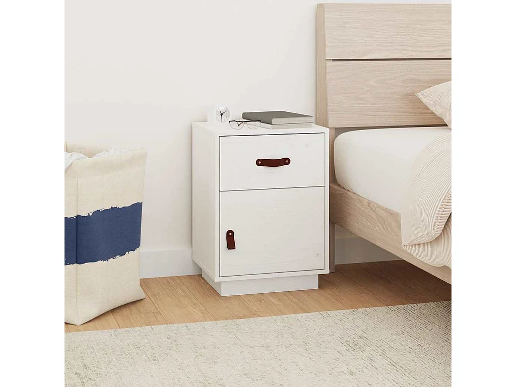 Nachttisch Weiß 35x34x32 cm Massivholz Kiefer