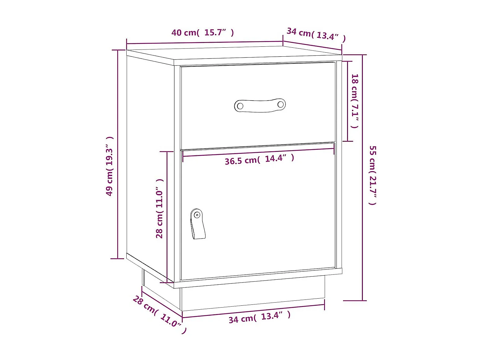 Nachttisch Weiß 40x34x55 cm Massivholz Kiefer