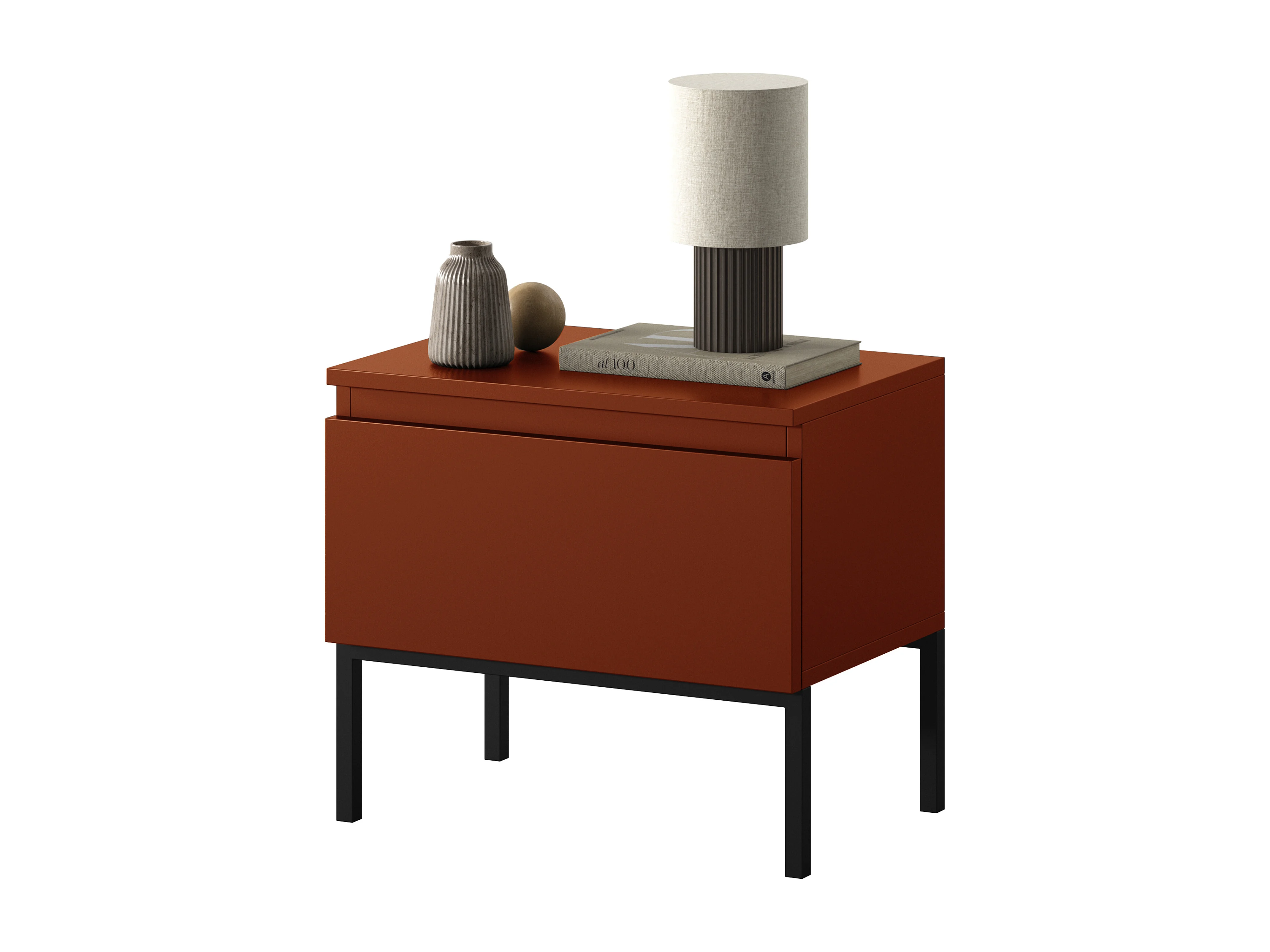 Nachttisch, Ziegelrot mit Metallbeinen - Bemmi
