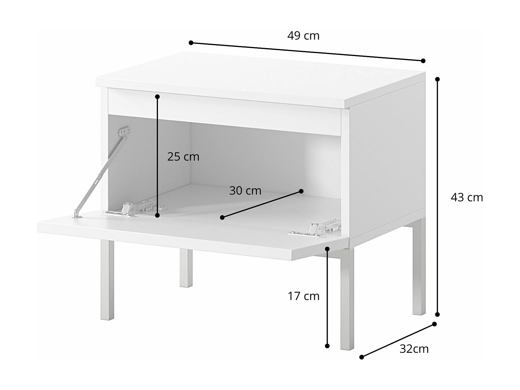 Nachttisch Nachtschrank, Weiß mit schwarzen Beinen - Bemmi