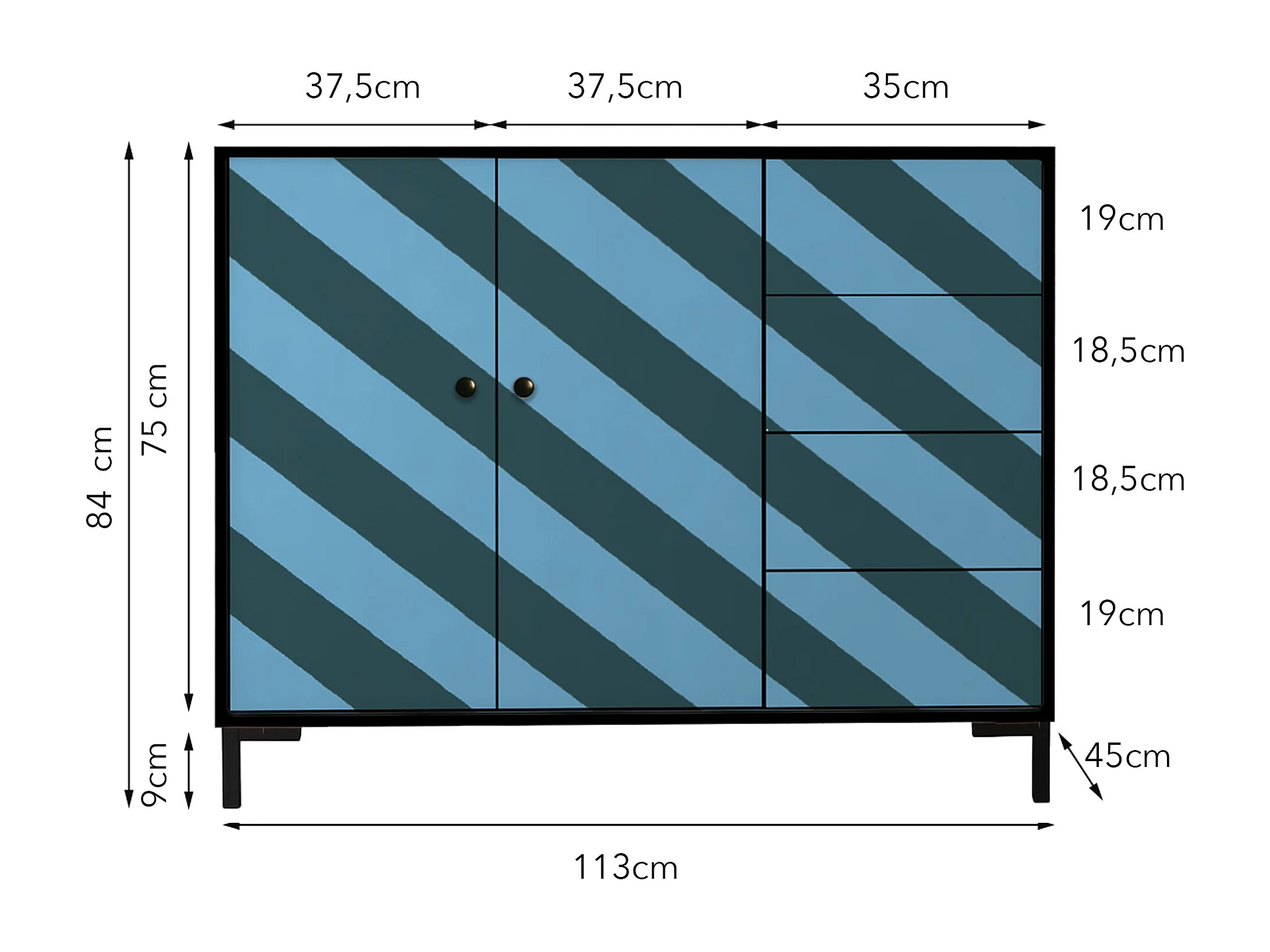 Niedriger Anrichte, 2 Türen und 4 Schubladen MDF