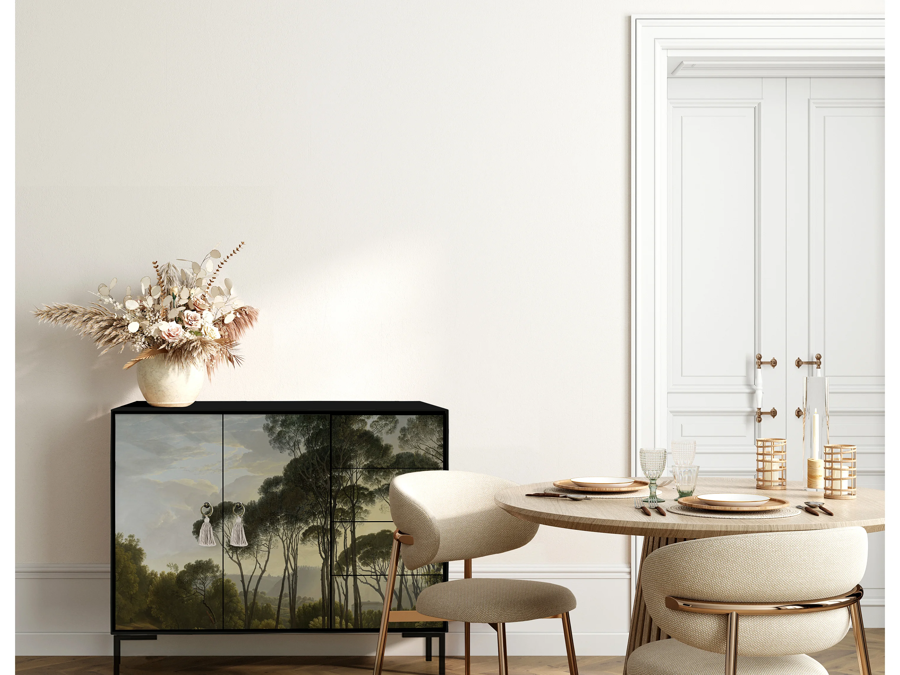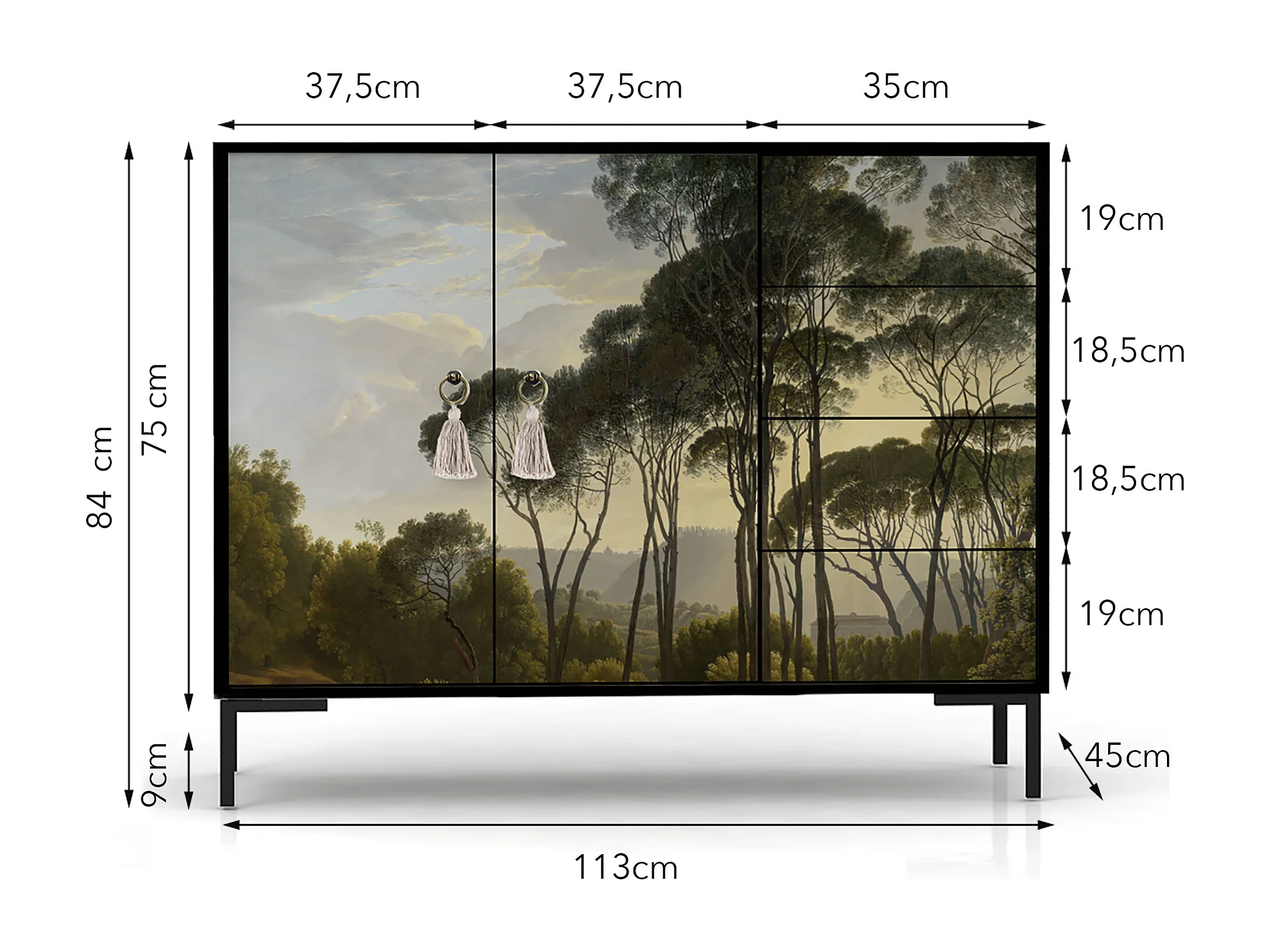 Niedriger Anrichte, 2 Türen und 4 Schubladen MDF