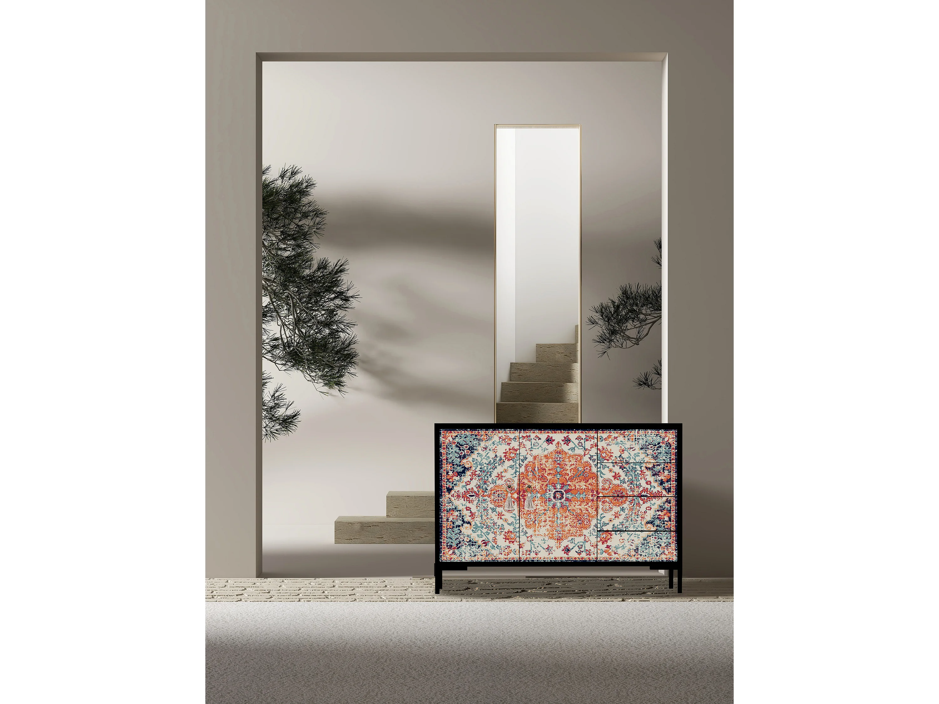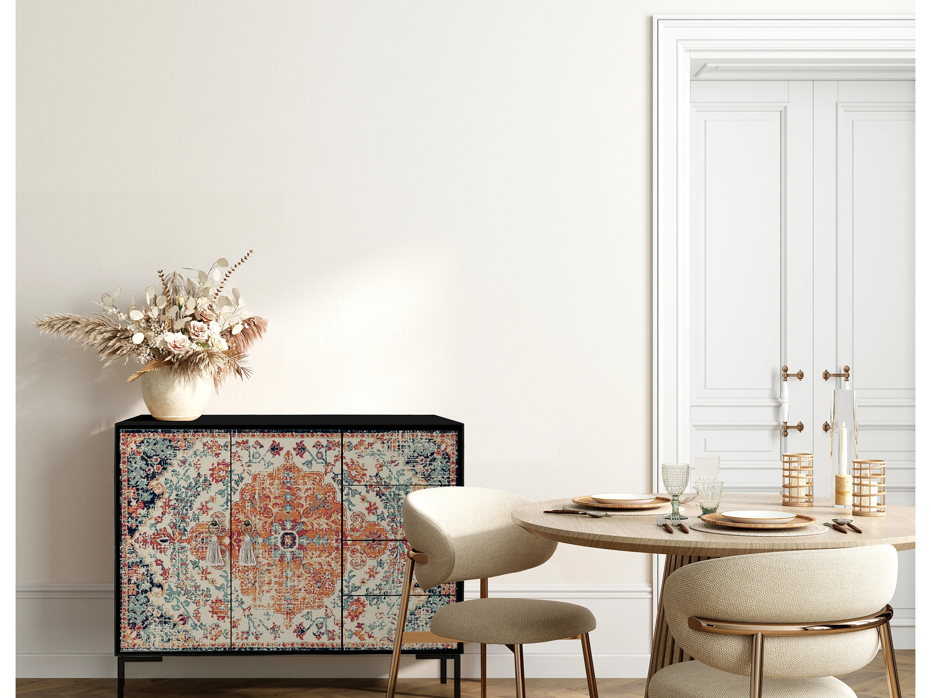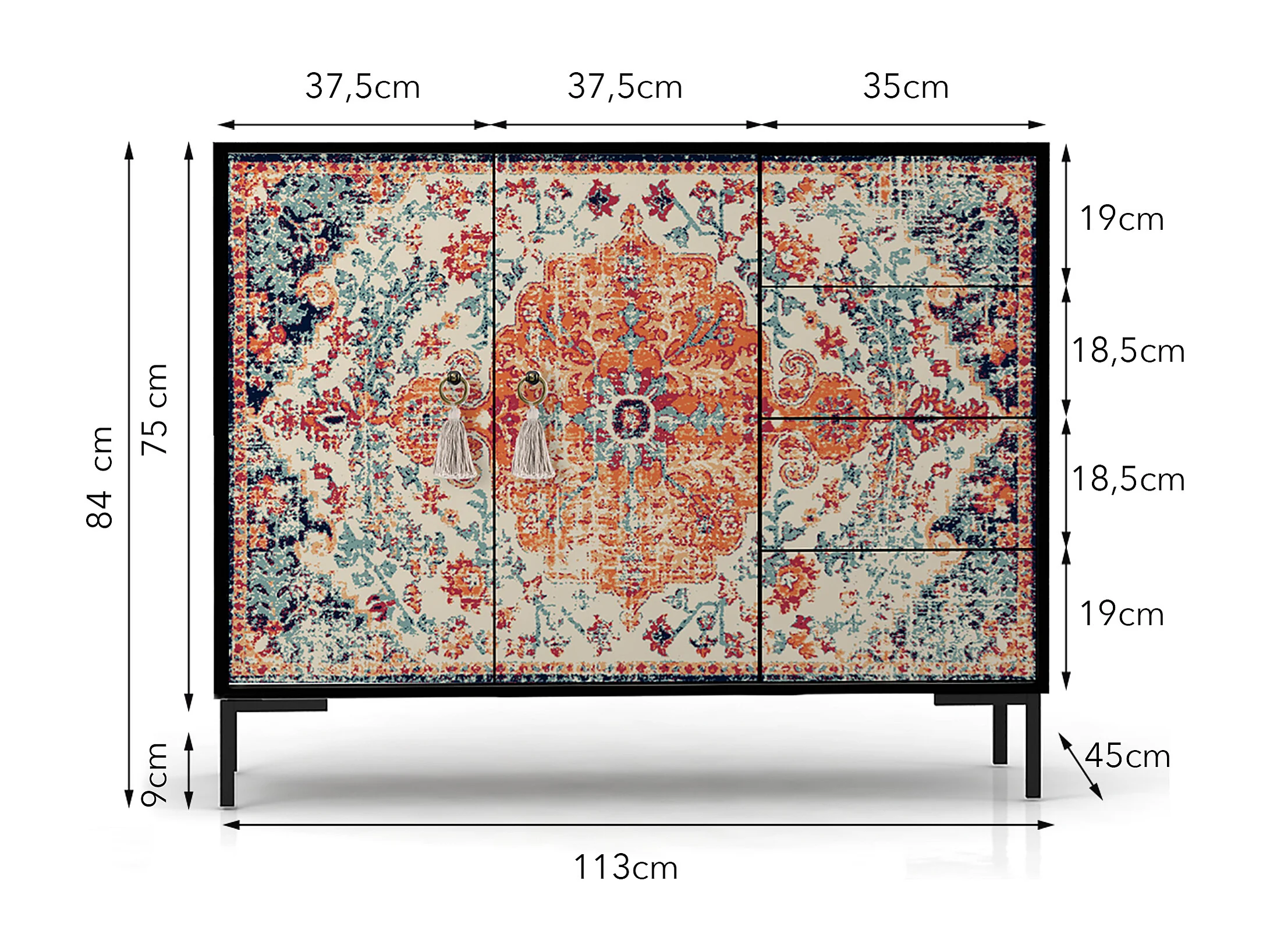 Niedriger Anrichte, 2 Türen und 4 Schubladen MDF
