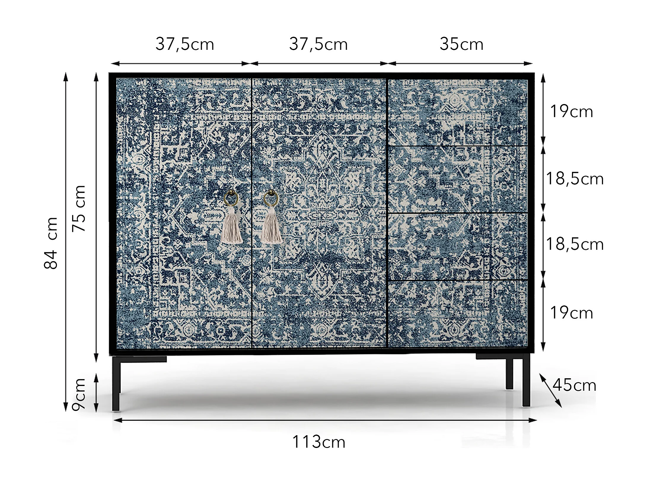 Niedriger Anrichte, 2 Türen und 4 Schubladen MDF