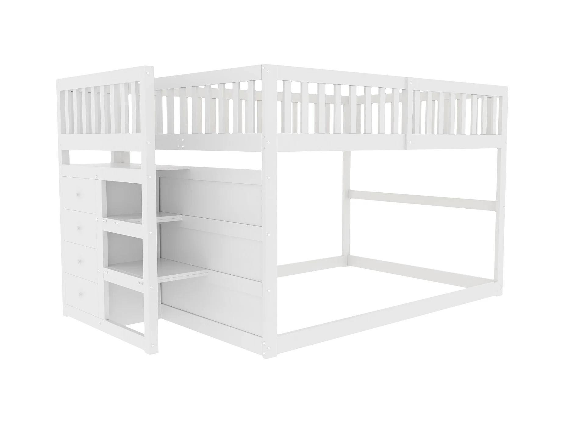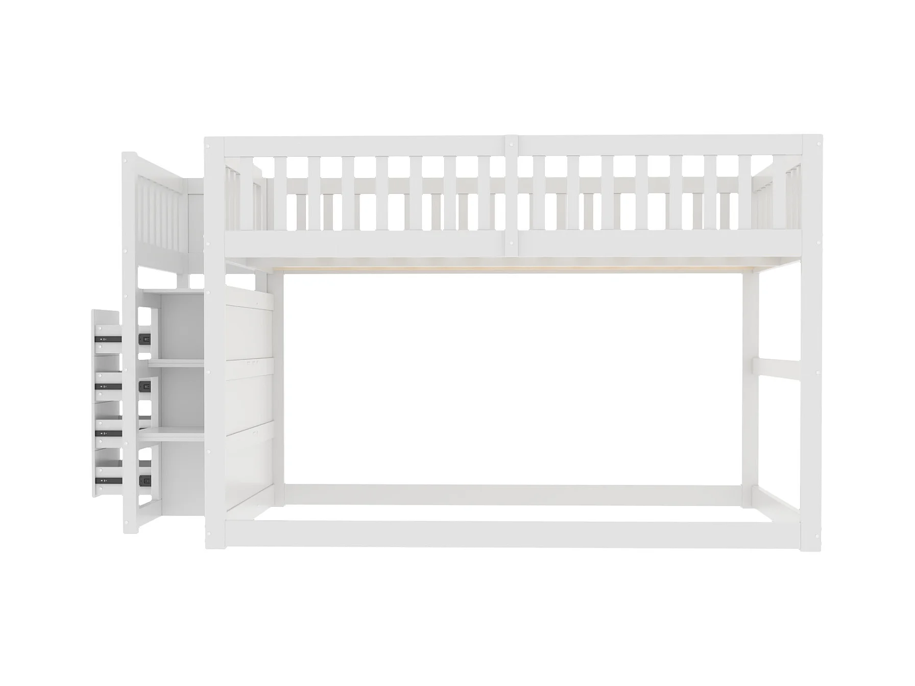 Niedriges Etagenbett140 x 200 cm, Sicherheits-Etagenbett mit Staufach, hohes Zaun-Design