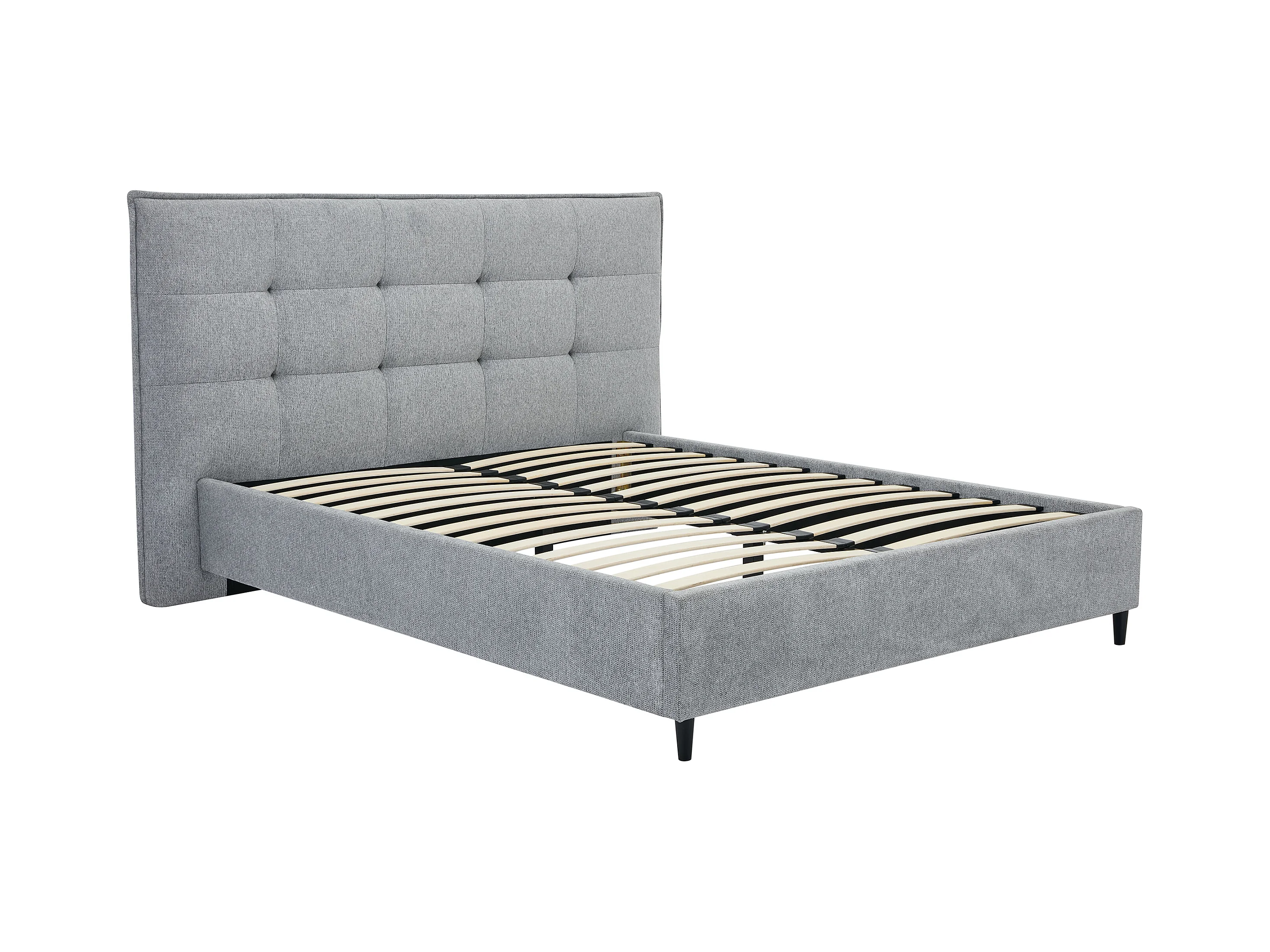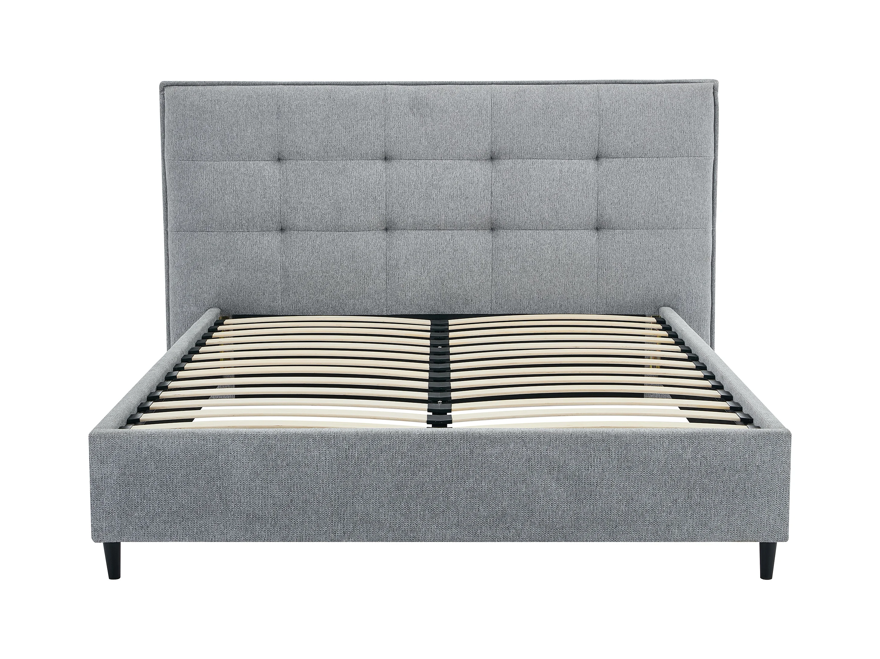 Bett mit gestepptem Kopfteil + Matratze - 180 x 200 cm - Stoff - Grau - NIRPIO