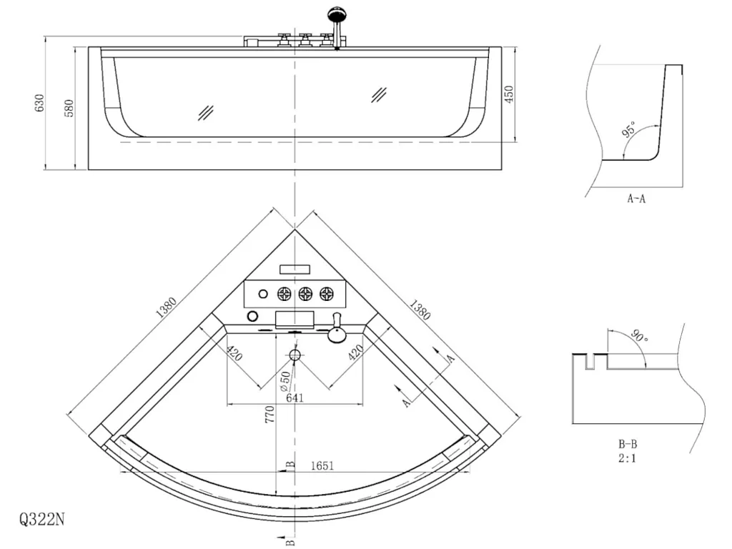 Whirlpool Eckwanne mit Glaswand - 2 Personen - 330 L - 138x138x59 cm - EVELINA