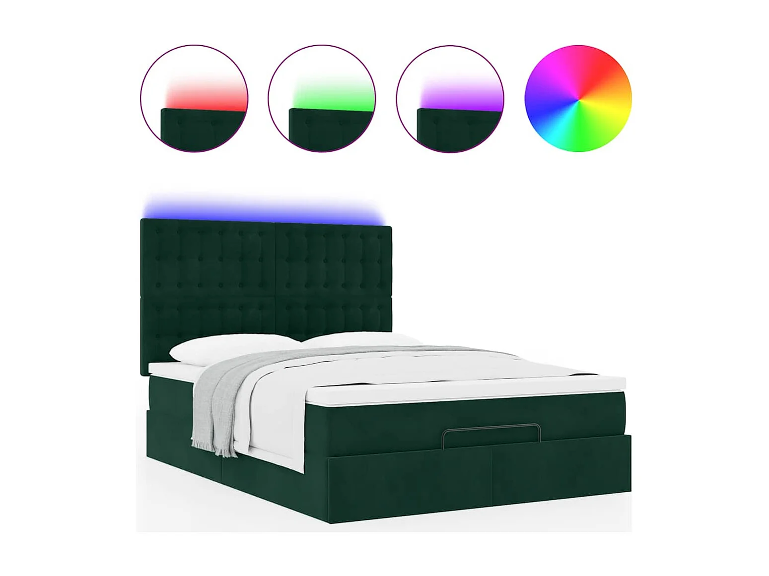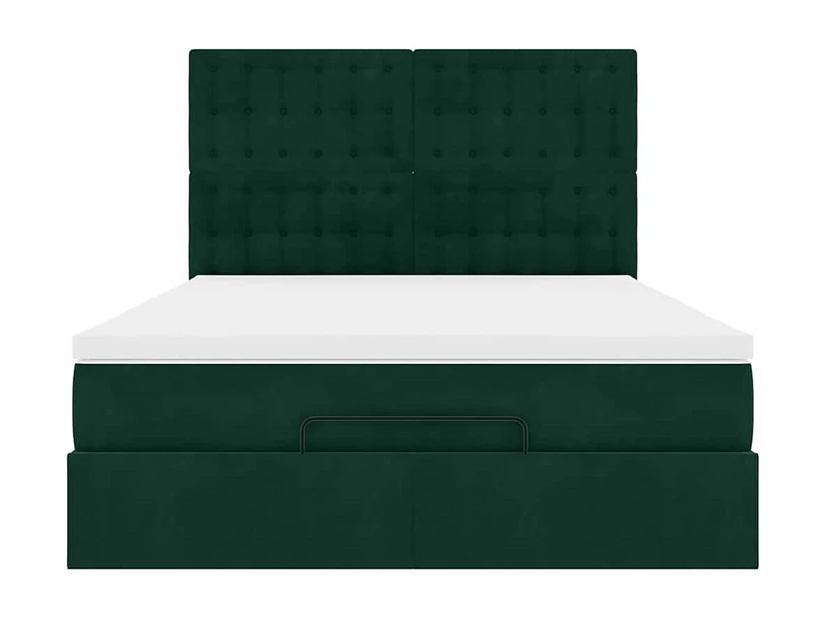 Ottoman-Bett mit Matratzen & LEDs Dunkelgrün 140x200 cm Samt