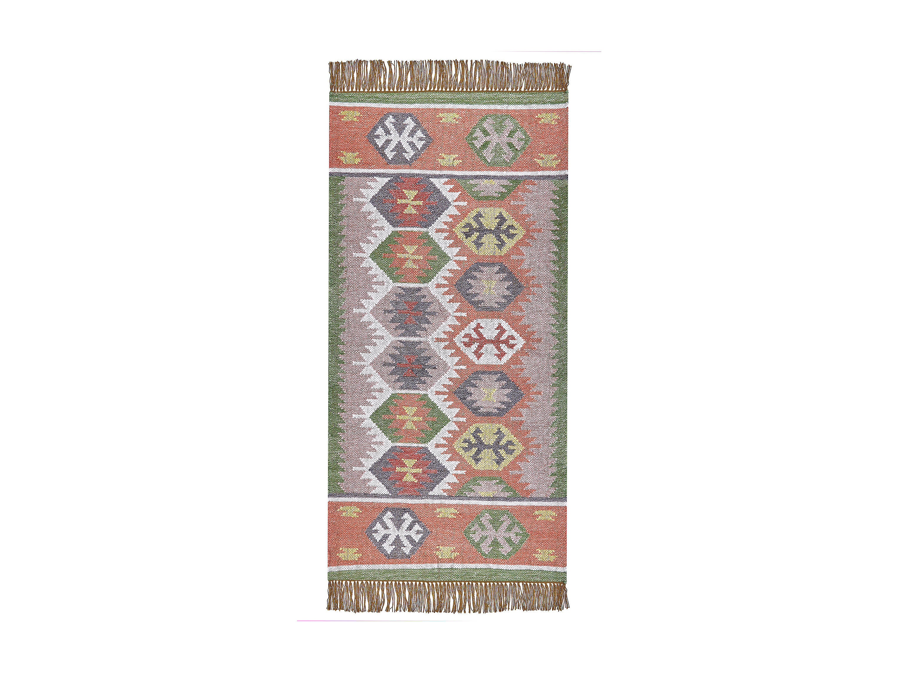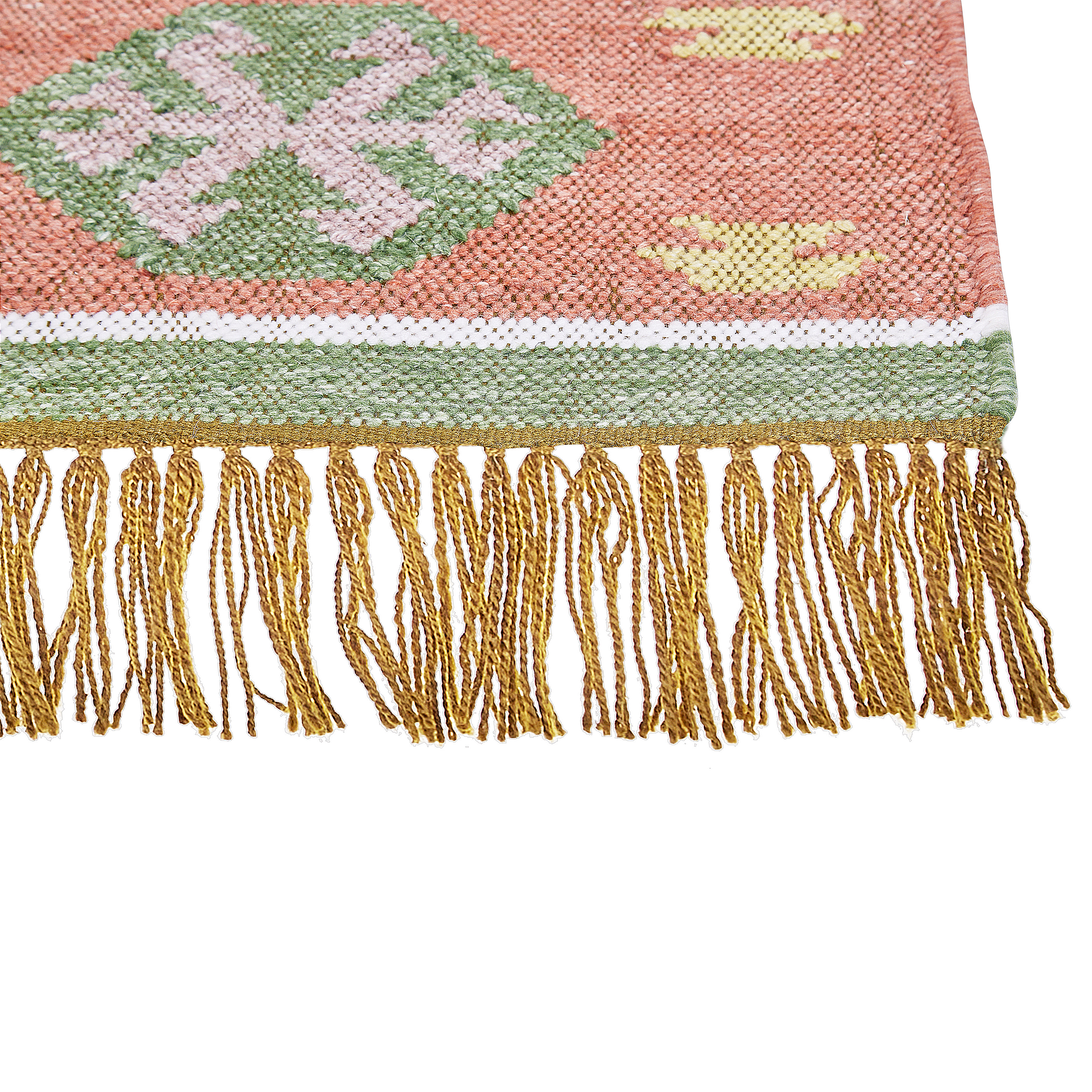 Teppich mehrfarbig / bunt 80 x 150 cm mit Fransen Kurzflor indischer Stil Sahbaz
