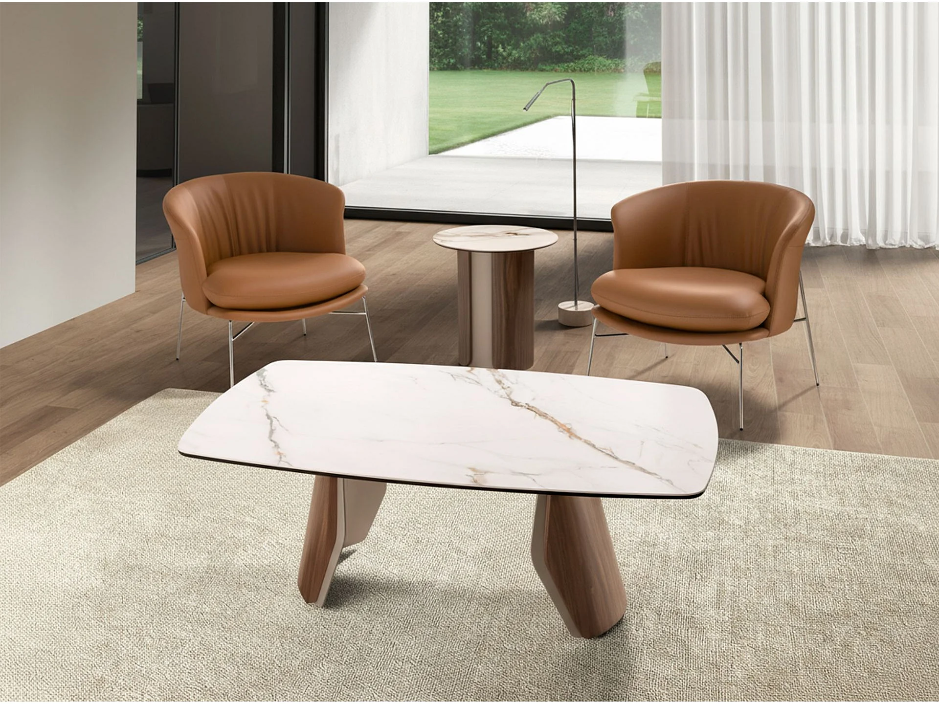 Ovaler Couchtisch aus Feinsteinzeug, metallisiertem Sandstahl und Nussbaumholz 2167 ANGEL CERDA