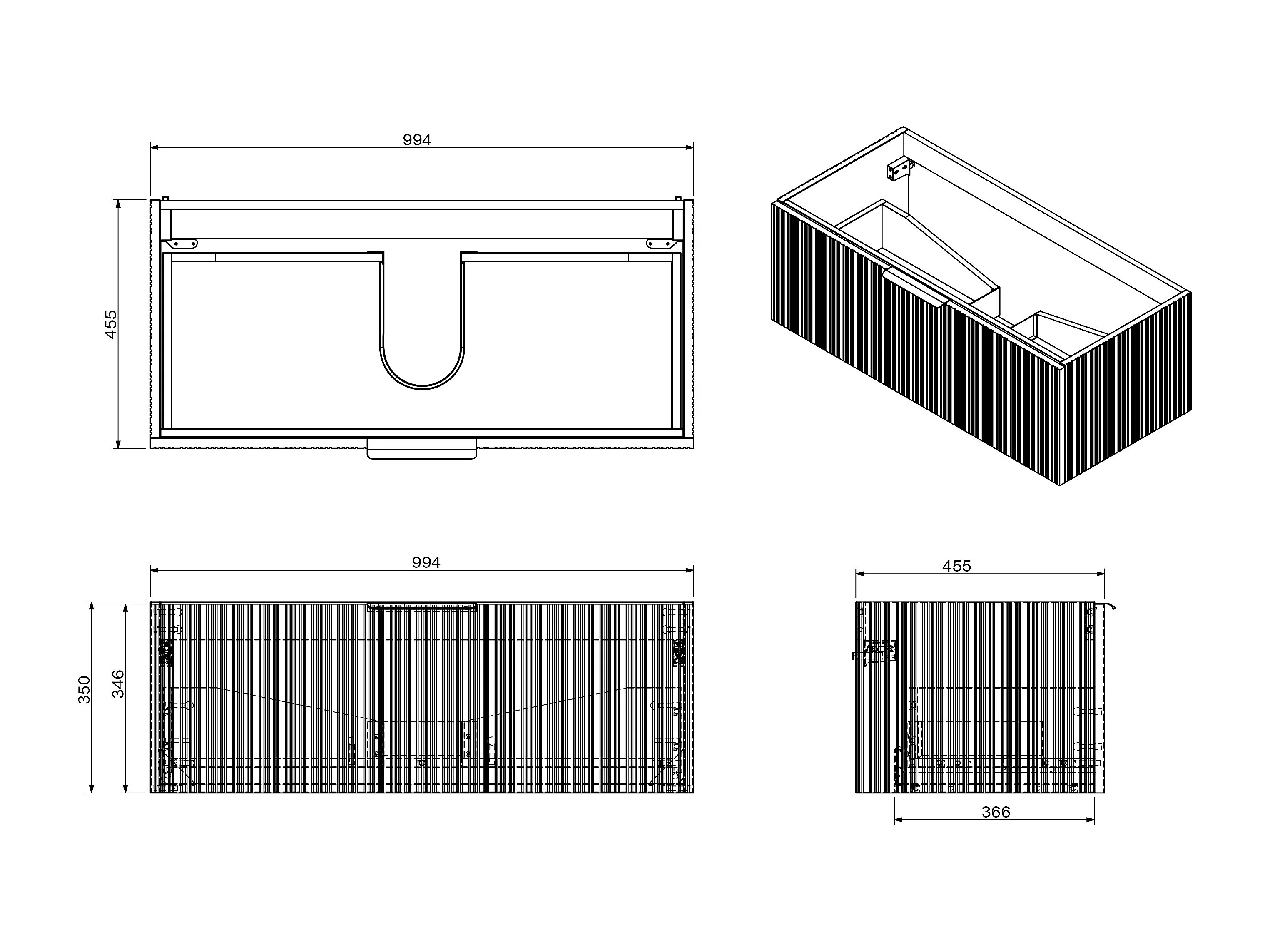 Badmöbelschrank hängend mit Rillenoptik, Einbauwaschbecken + Armatur - Beige - 100 cm - PALIRO
