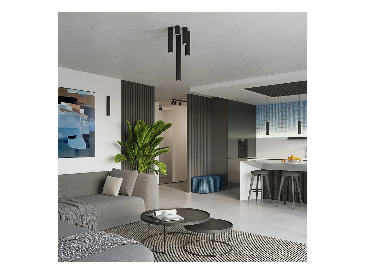 Pendelleuchte Karbon Minimalistisch Aus Aluminium - 3 Lichtquellen - L.19,5 X H. Cm - Schwarz