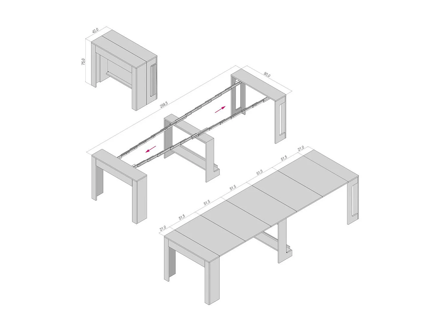 PETRA - Ausziehbarer Konsolentisch aus Eiche von 42 cm bis 3 Meter - integrierte Erweiterungen - für bis zu 12 Personen - kostenloser Versand