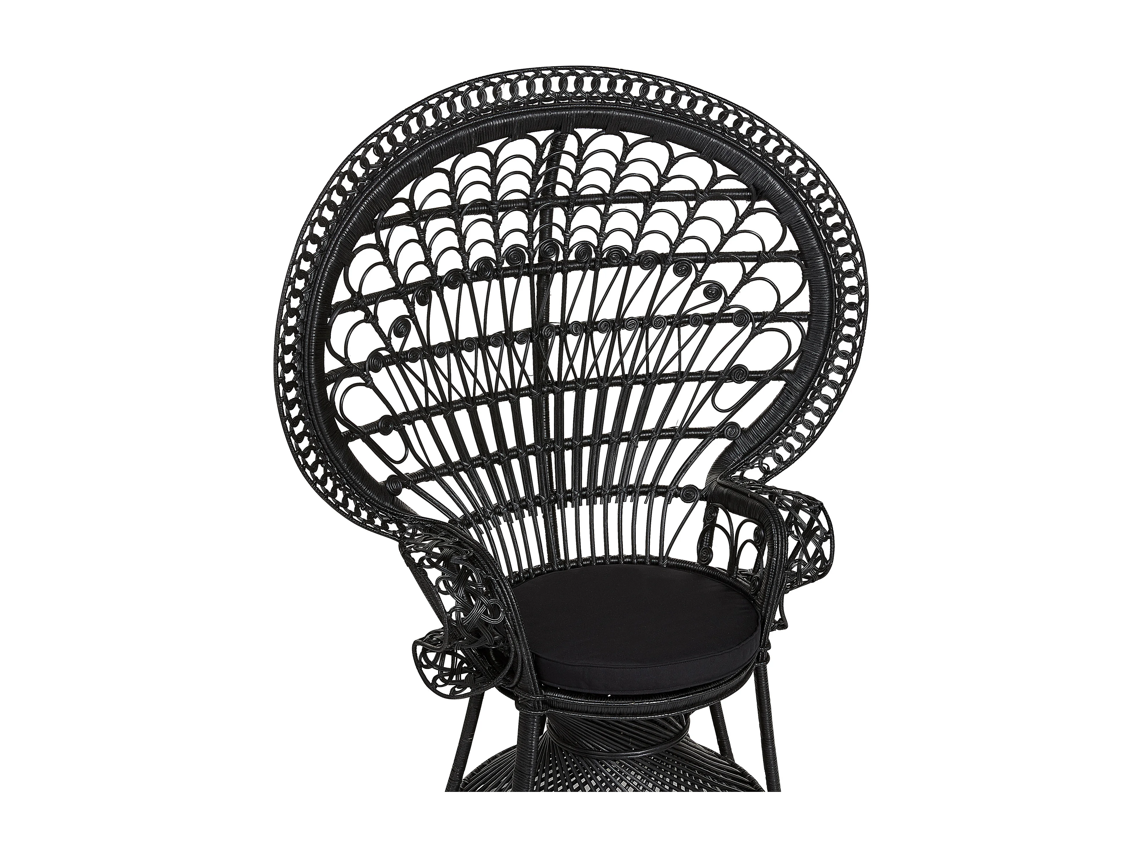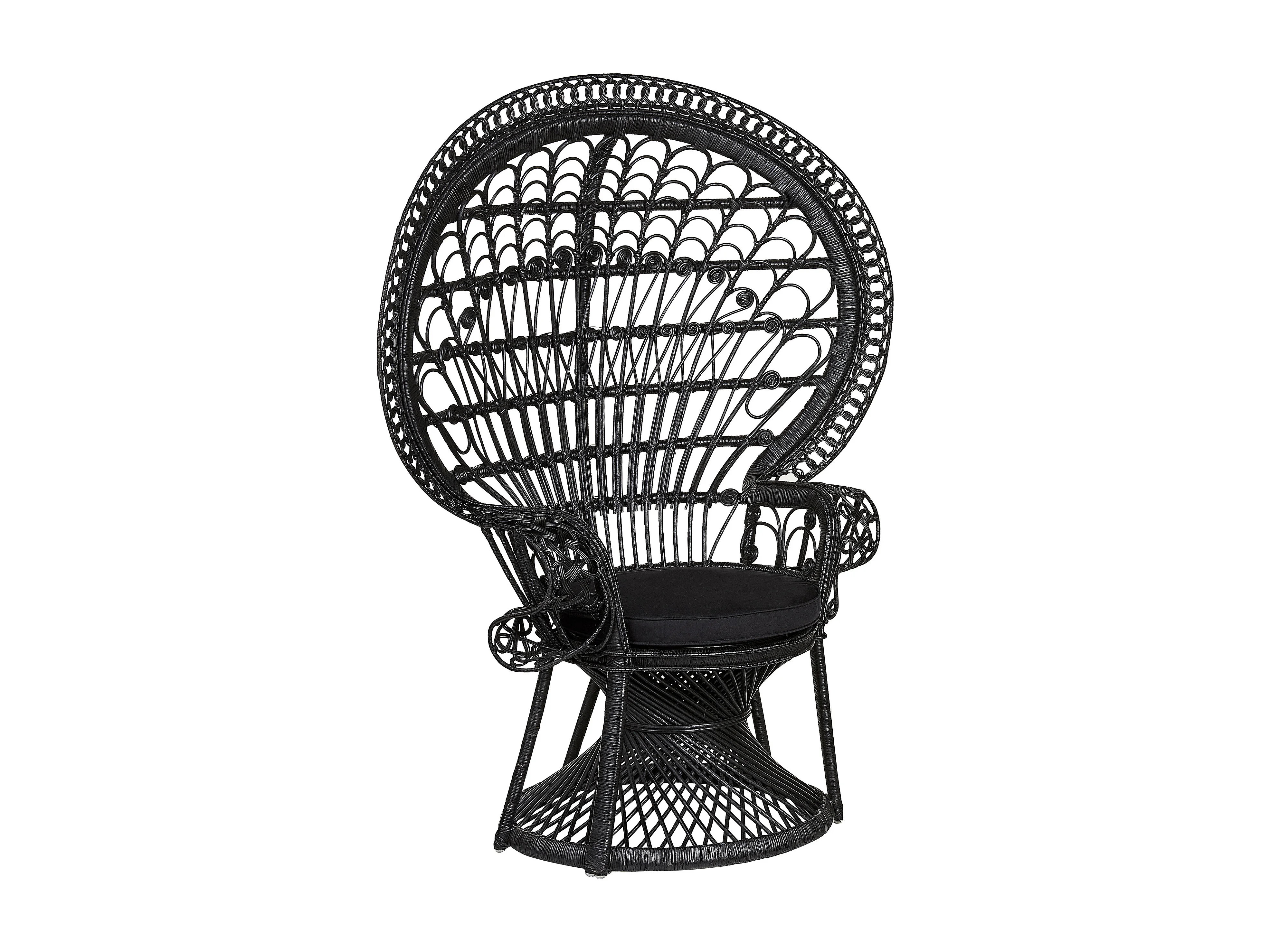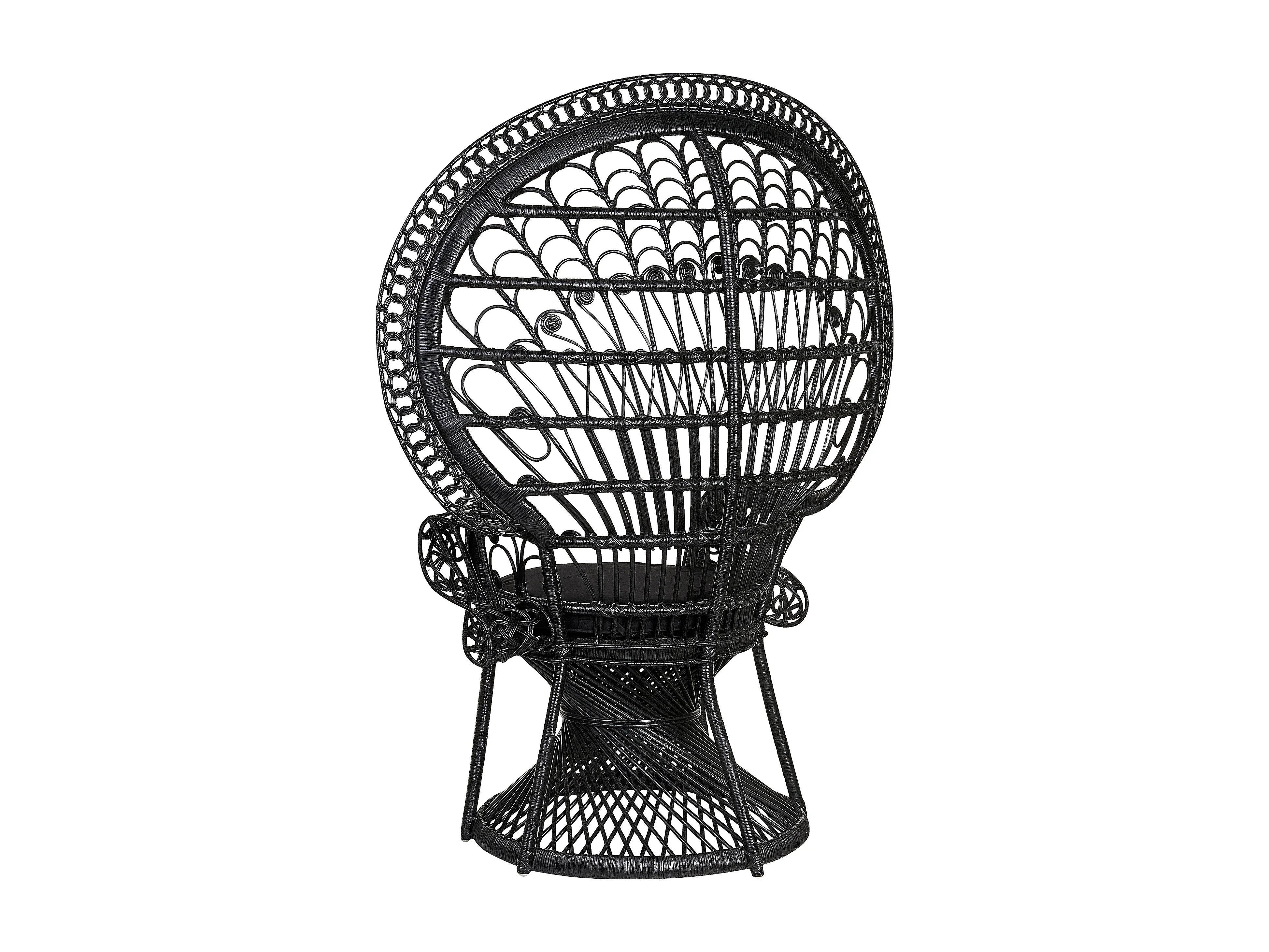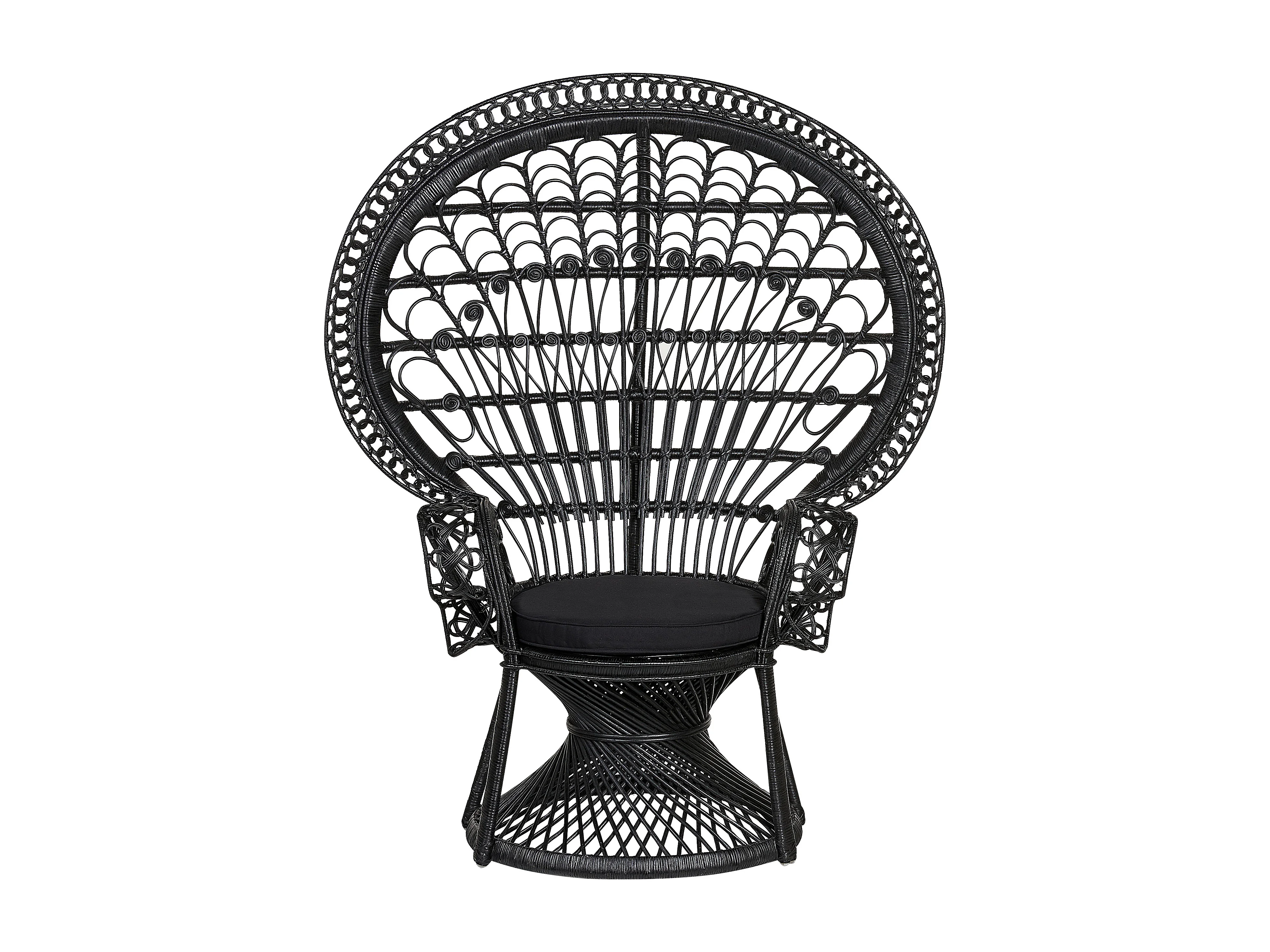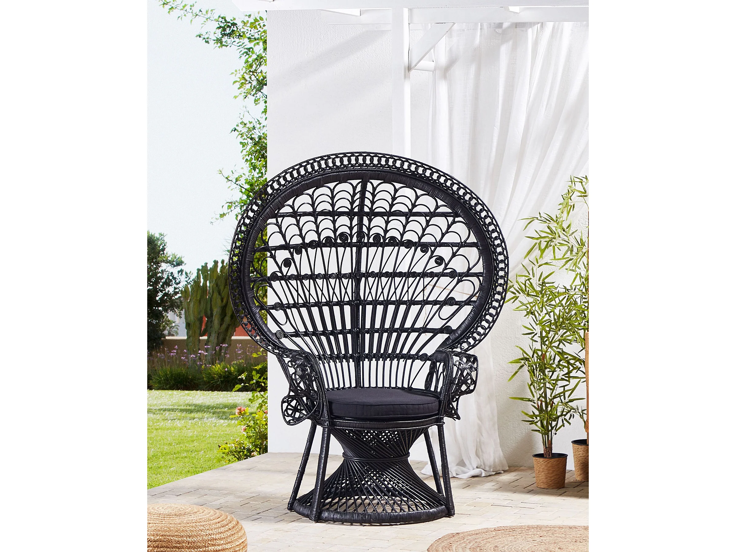 Outdoor/Indoor Pfauensessel aus Rattan schwarz mit Sitzkissen Boho Emmanuelle
