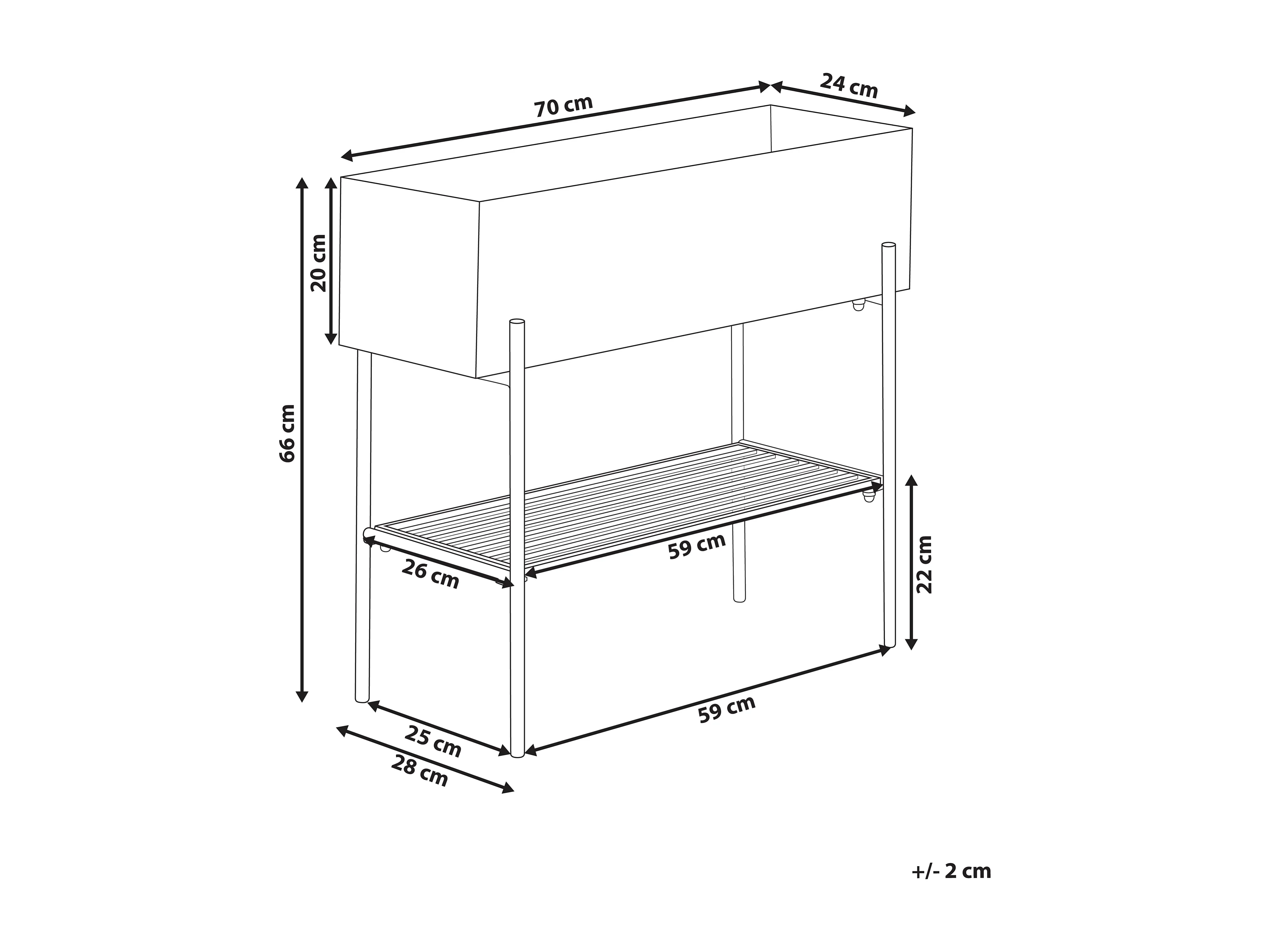 Pflanzenständer Metall beige rechteckig 24x70x66 cm für Innen u. Außen Vinca