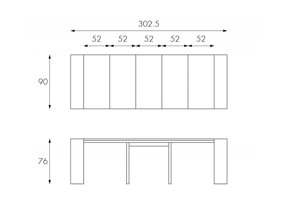 Pinocchio - Ausziehbare Konsole (42,5/302,5 x 90 cm) aus grau lackiertem MDF