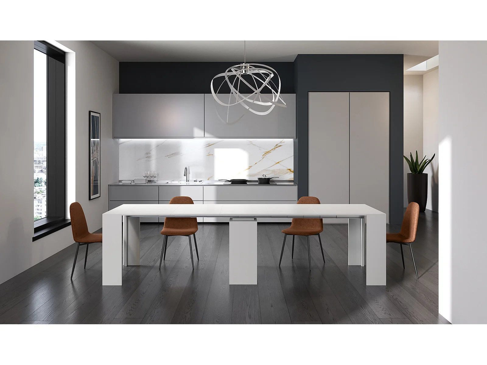 Pinocchio - Ausziehbare Konsole (42,5/302,5 x 90 cm) aus weiß lackiertem MDF