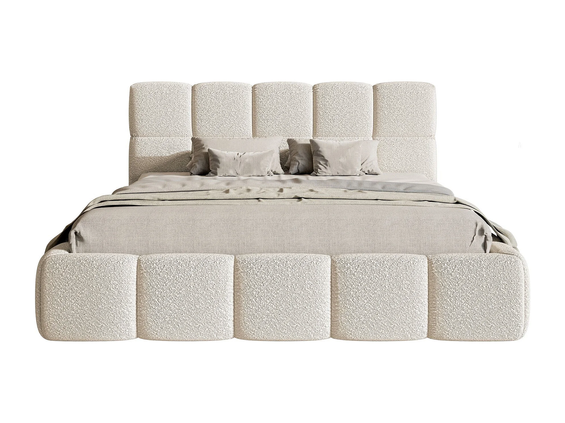 Polsterbett 120x200 cm – Bettkasten & Lattenrost – Bouclé Hellbeige – CLOUDY