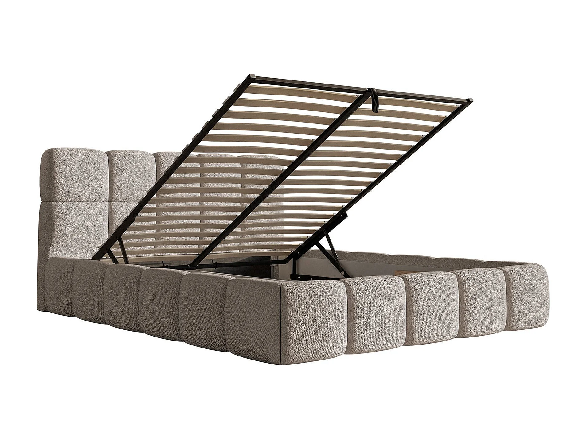 Polsterbett 120x200 cm – Bettkasten & Lattenrost – Bouclé Hellgrau – CLOUDY