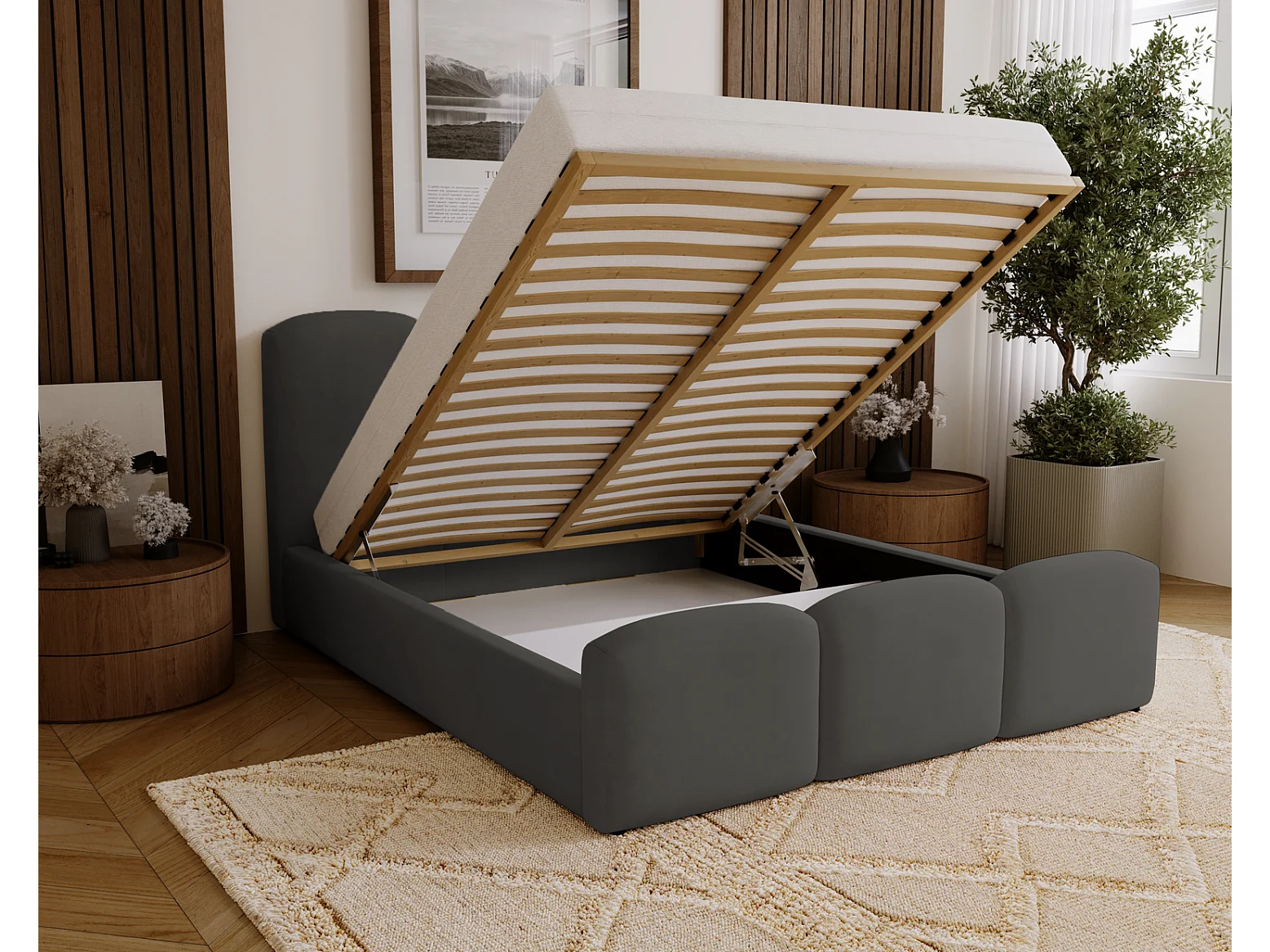 Polsterbett 140x200 Capri mit Bettkasten, Lattenrost - Samtstoff, Dunkelgrau (Magic Velvet 2271)