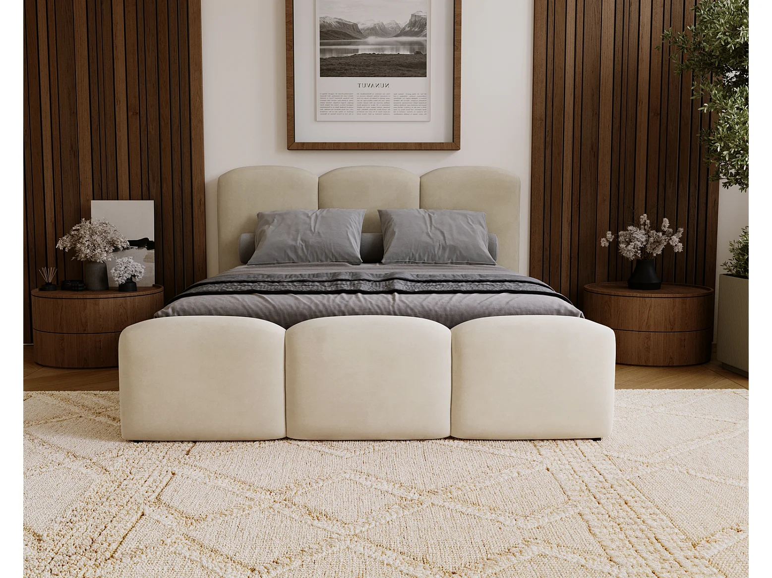 Polsterbett 140x200 Capri mit Bettkasten, Metall-Lattenrost - Samtstoff, Beige (Magic Velvet 2201)