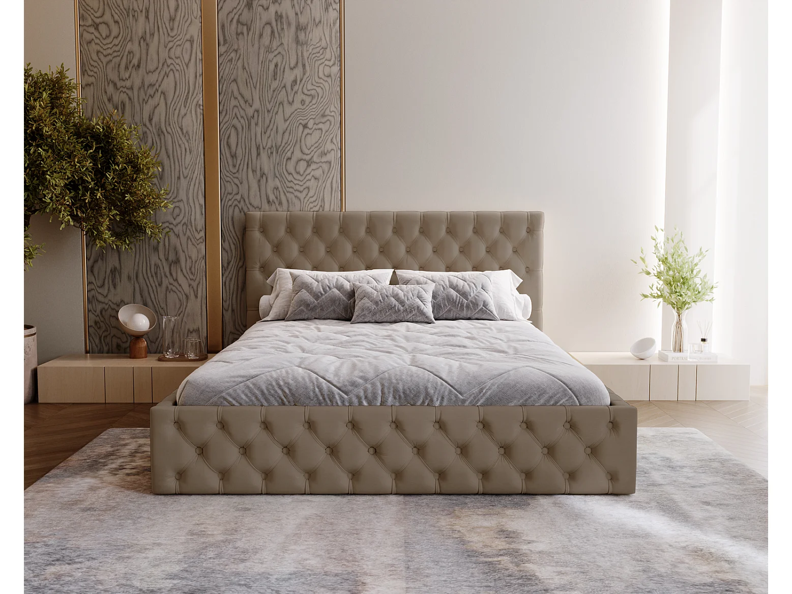 Polsterbett 140x200 Verti Slim - Samtstoff, Bett mit Bettkasten, Metall-Lattenrost - Braun (Magic Velvet 2206)