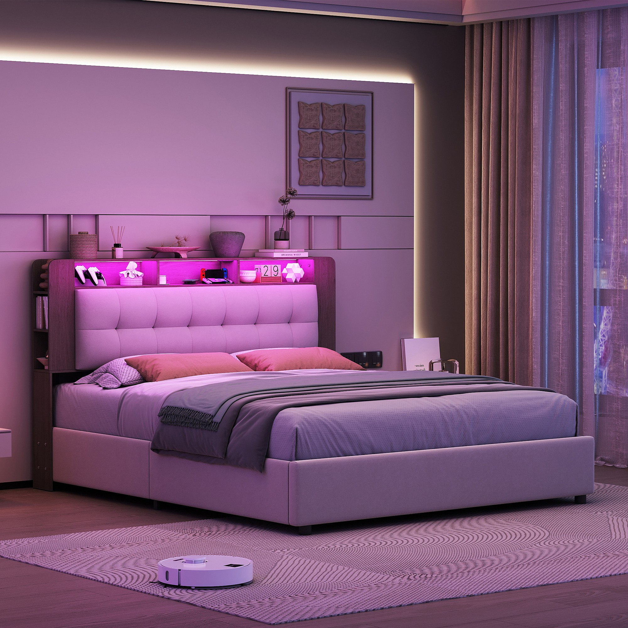 Polsterbett 140x200cm mit Lattenrost, Stauraumbett und LED, Samt, weiß