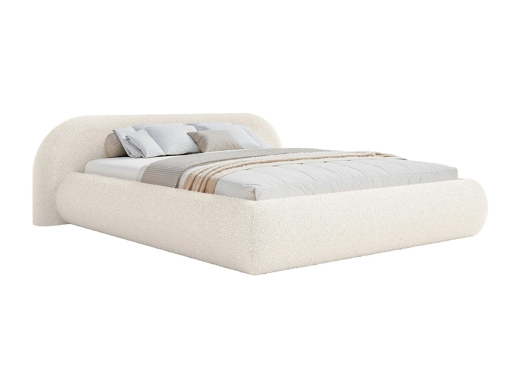 Polsterbett 160x200 – Bouclé – Creme – SHELS LOW