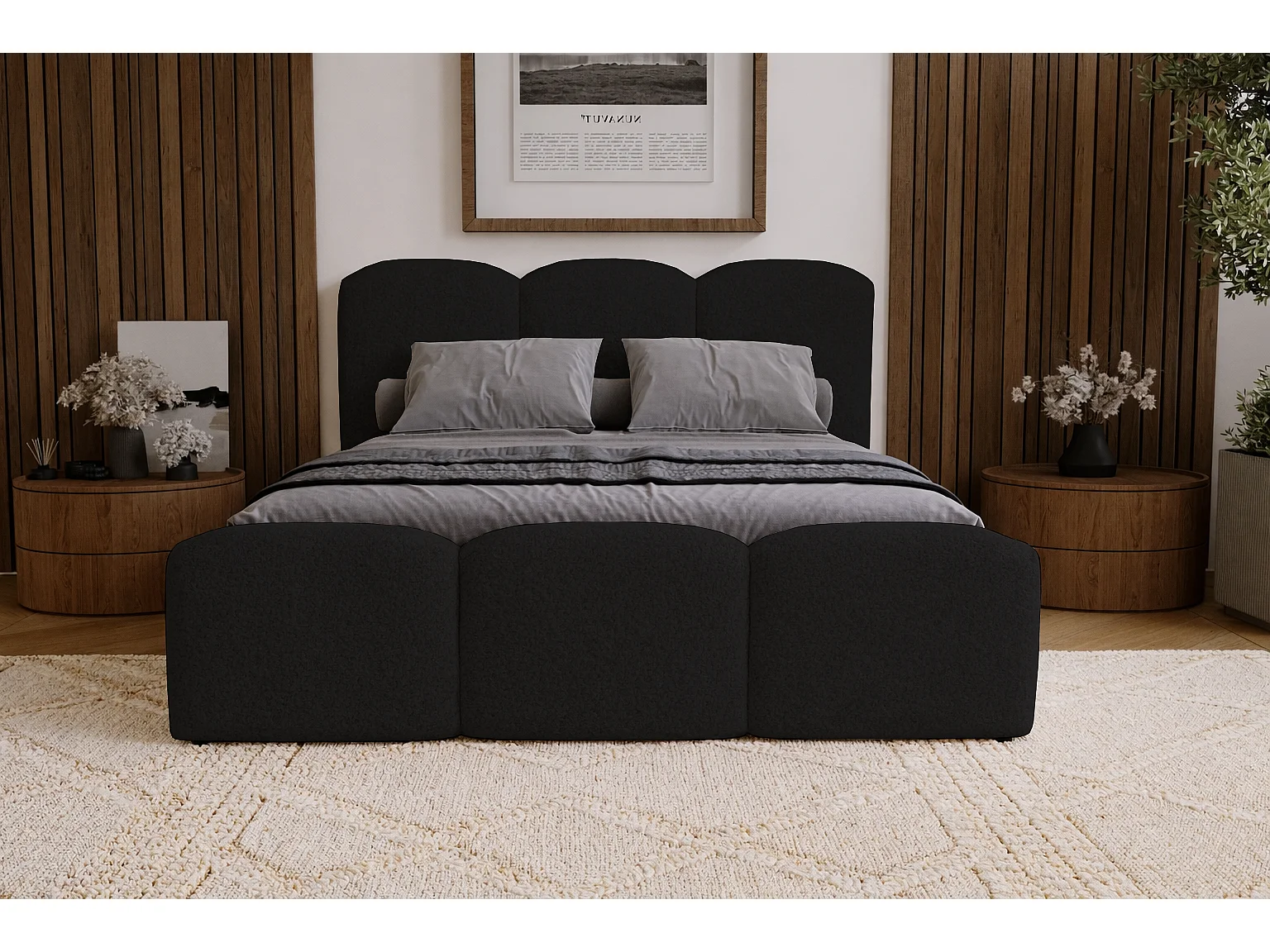 Polsterbett 160x200 Capri - Doppelbett mit Bettkasten, Lattenrost - Bouclé, Schwarz (Lambi 13)