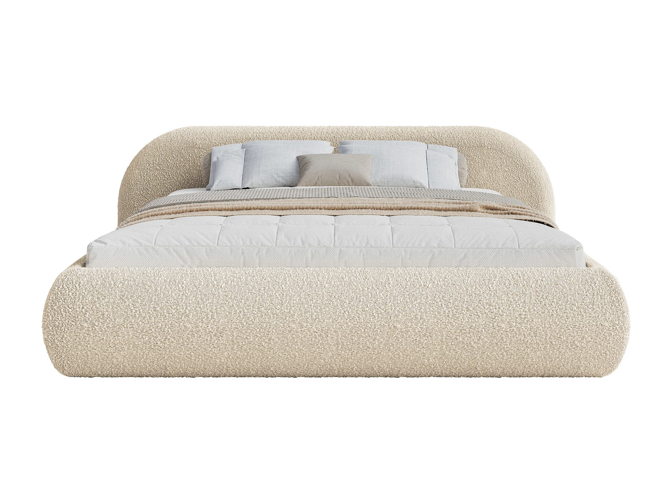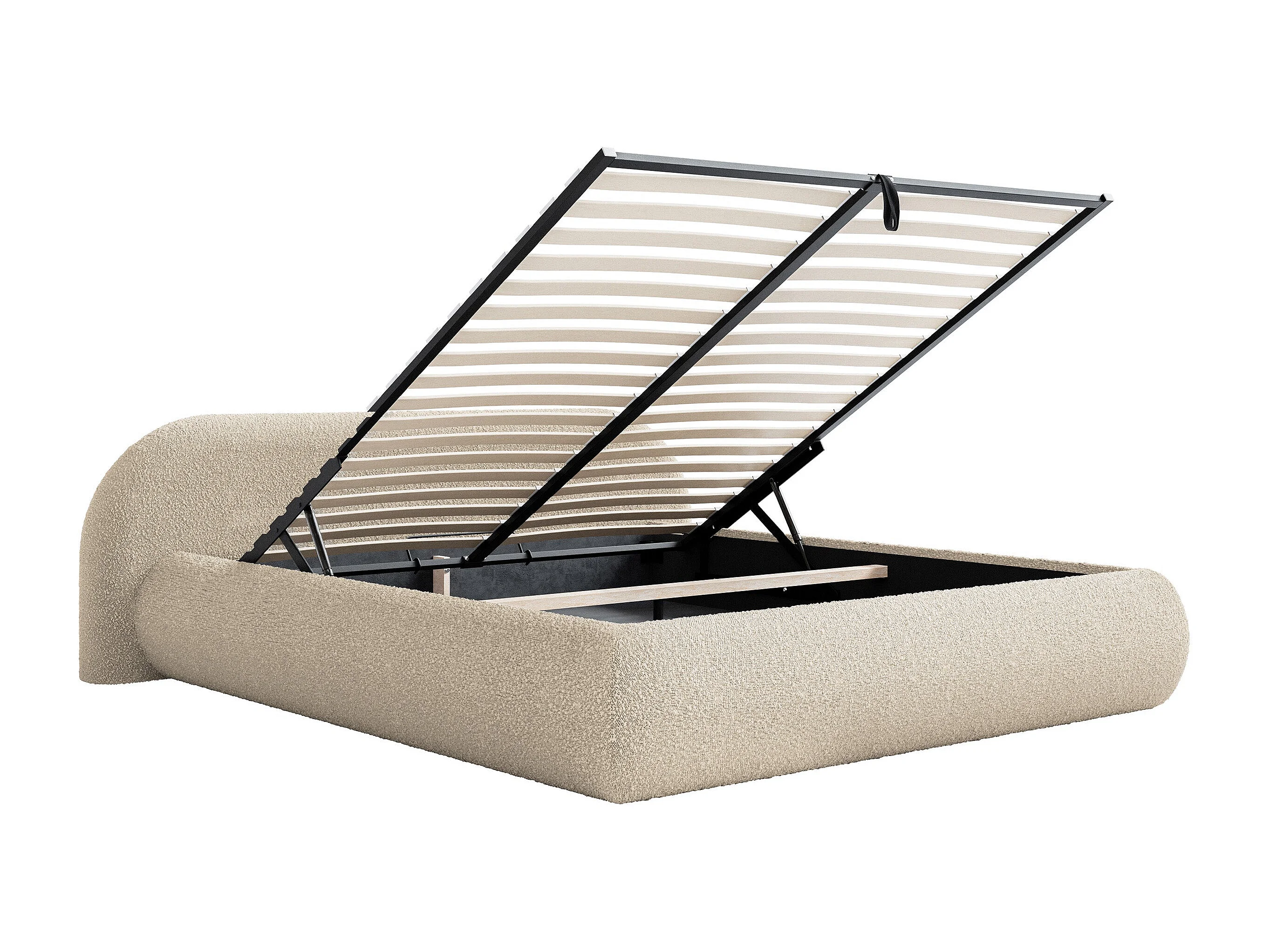 Polsterbett 160x200 mit Bettkasten – Bouclé – Hellbeige – SHELS LOW