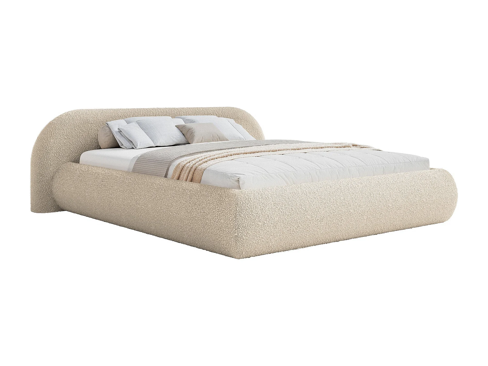 Polsterbett 180x200 mit Bettkasten – Bouclé – Hellbeige – SHELS LOW