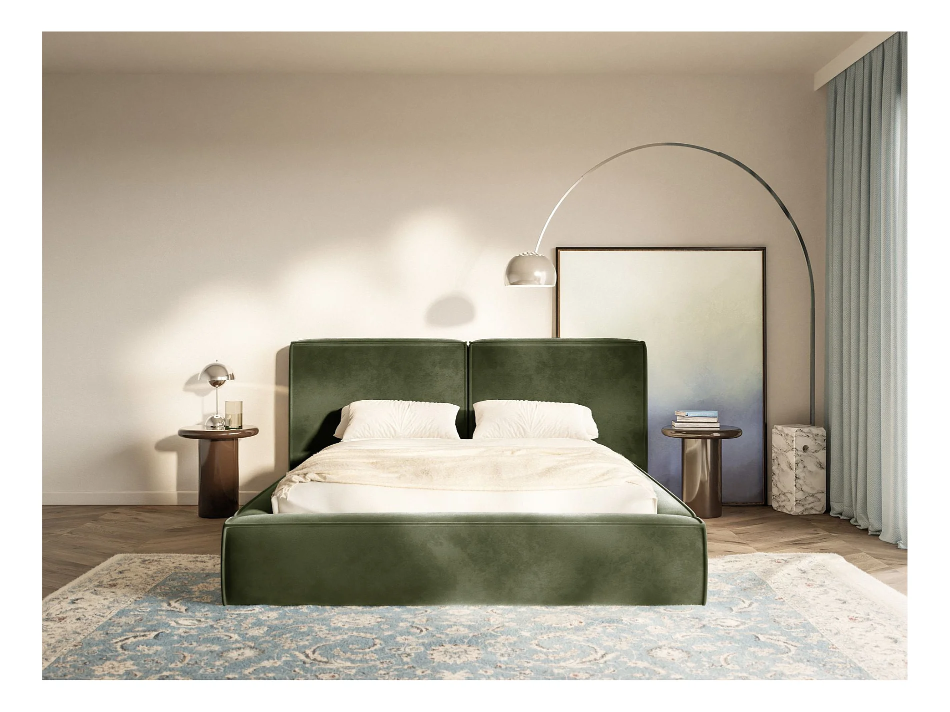 Polsterbett 180x200 mit Bettkasten – Lattenrost – Velours – olivgrün – TILVES