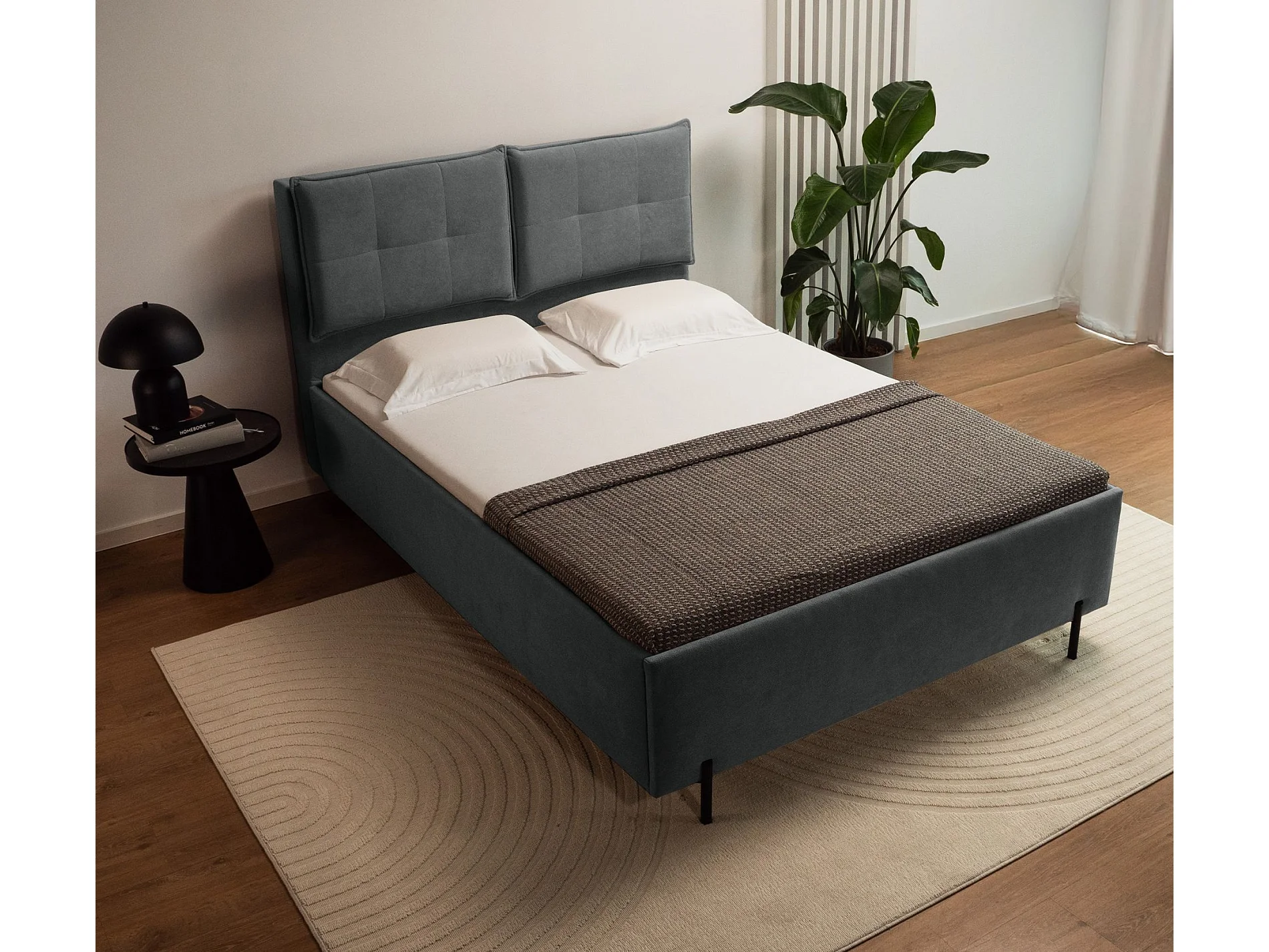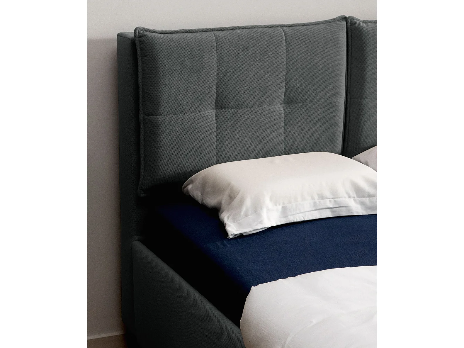 Polsterbett 180x200 mit klappbaren Rückenkissen – wasserfeste Chenille und Stauraum – Dunkelgrau – BELLEO