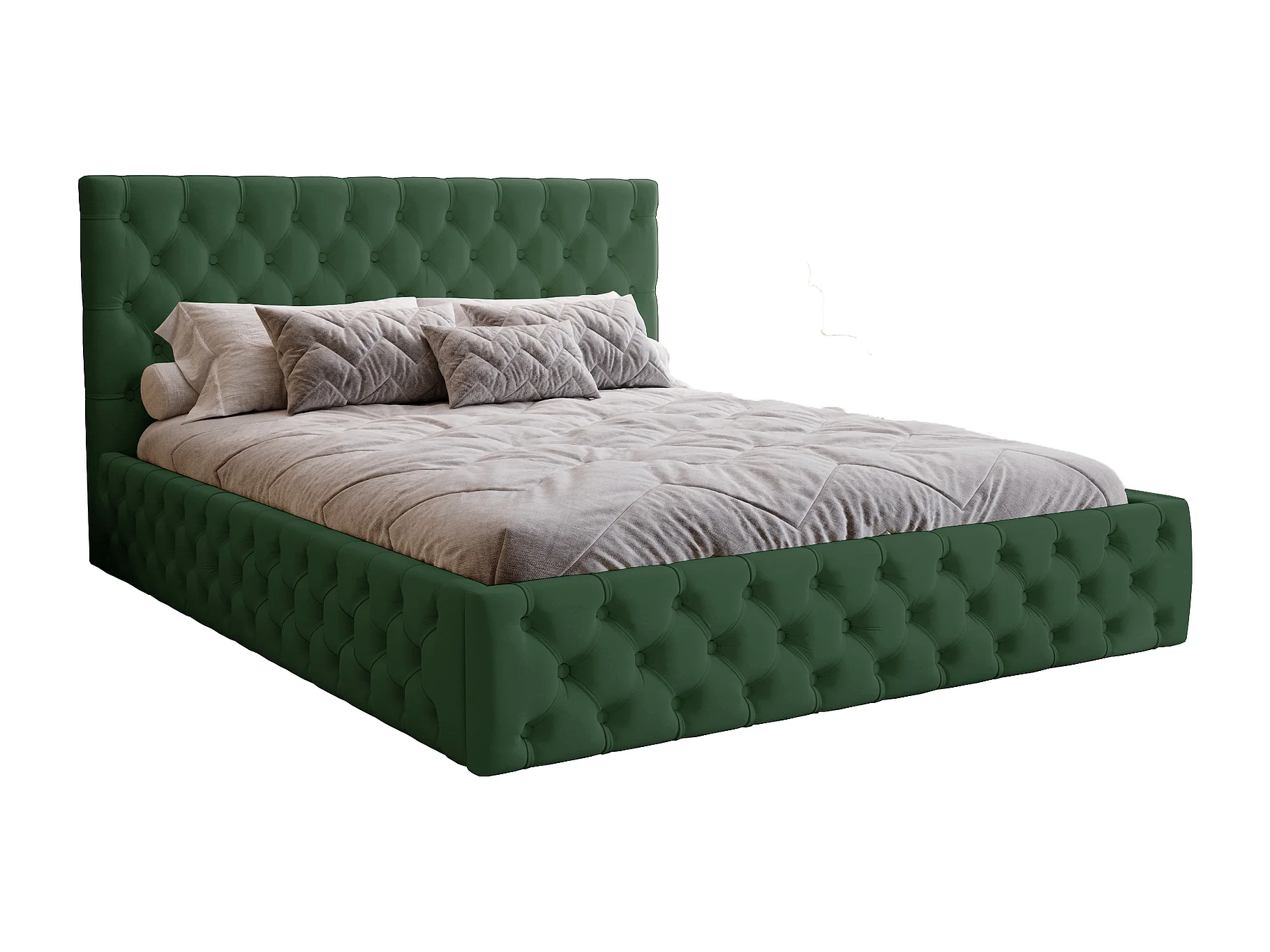 Polsterbett 180x200 Verti Slim - Samtstoff, Bett mit Bettkasten, Metall-Lattenrost - Grün (Magic Velvet 2225)