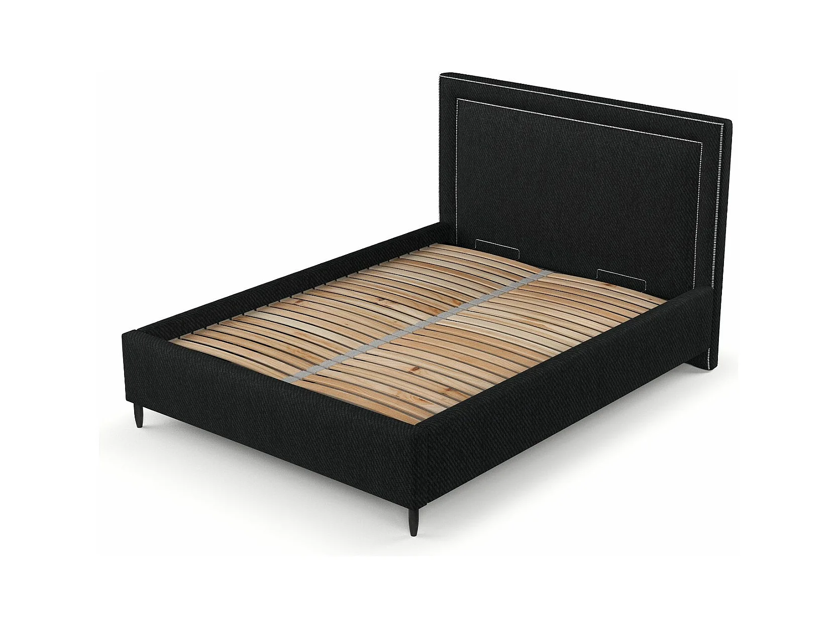 Emporius Polsterbett 180x200 Roma Slim - Bett vom Hersteller, mit Bettkasten, Bouclé stoff, dickem Schaumstoff (Schwarz - Anthology 19)