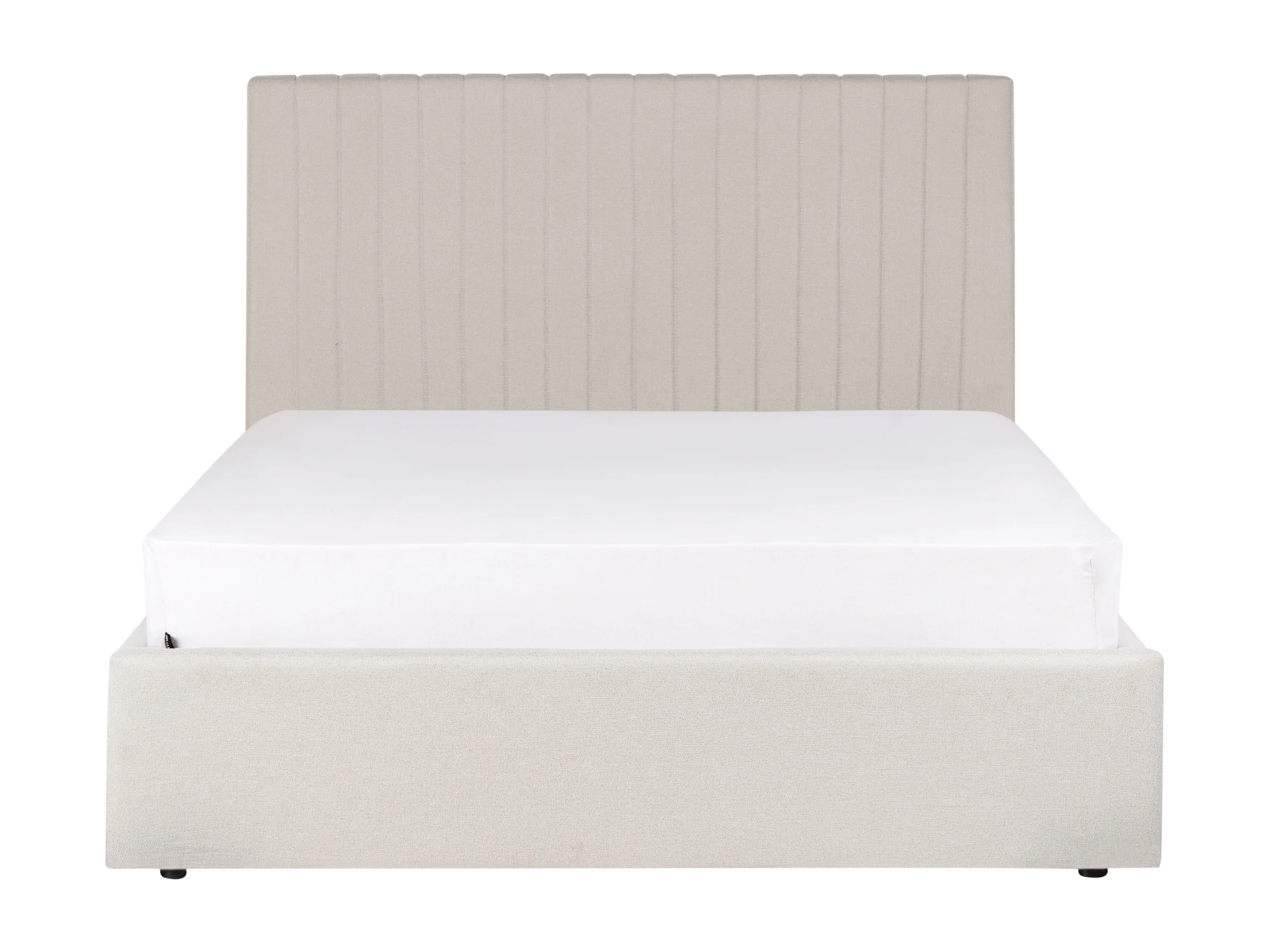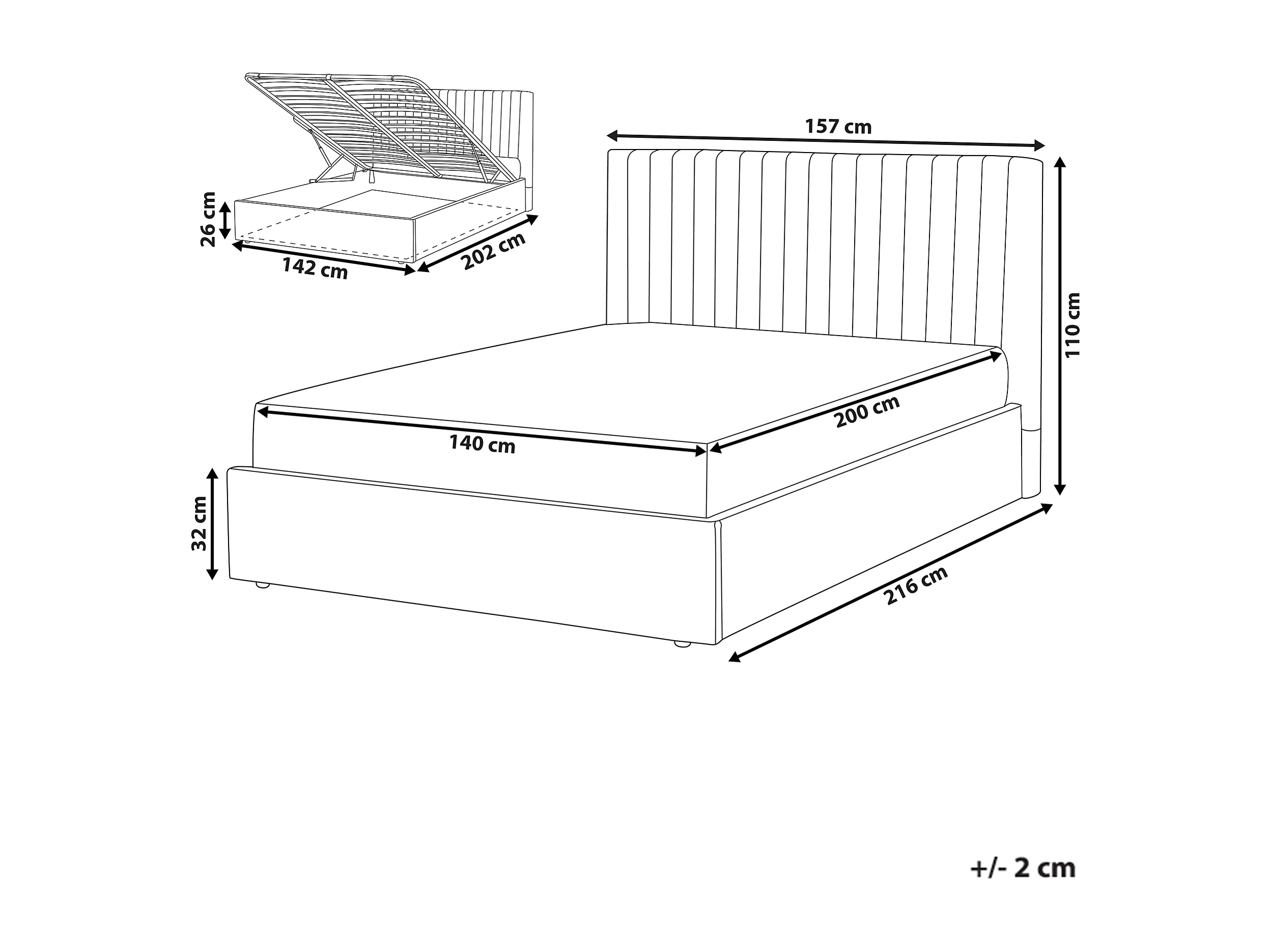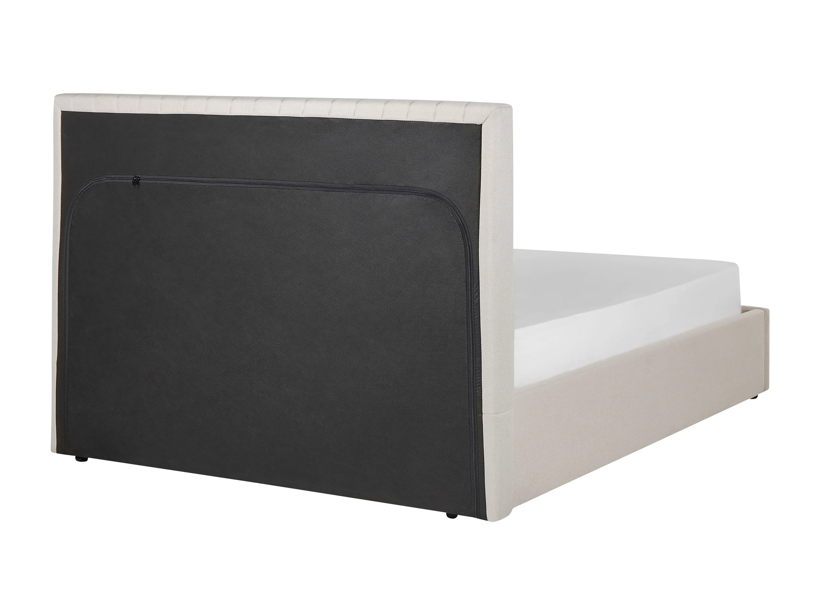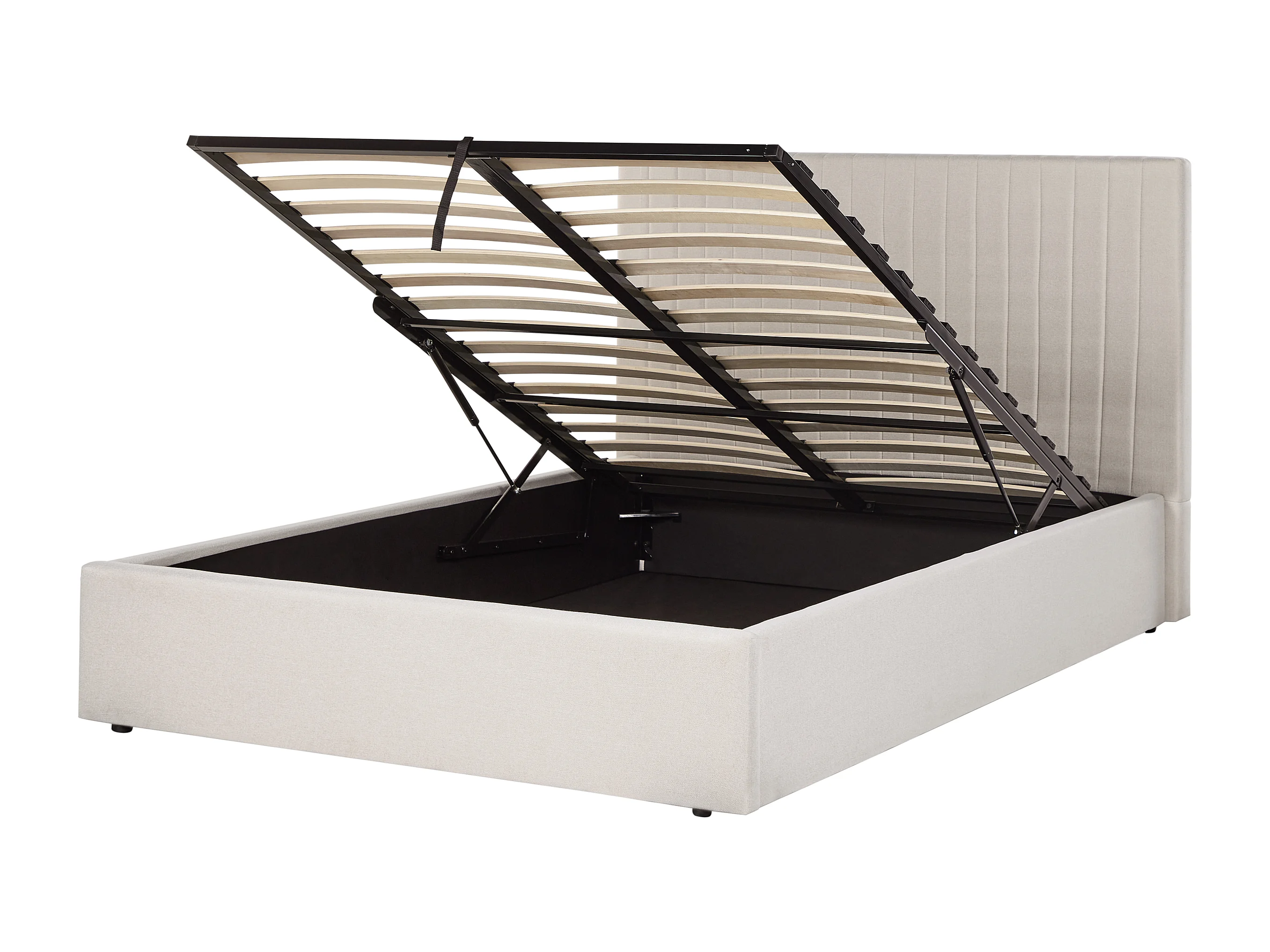 Polsterbett beige 140 x 200 cm mit Stauraum gestepptes Kopfteil Vion