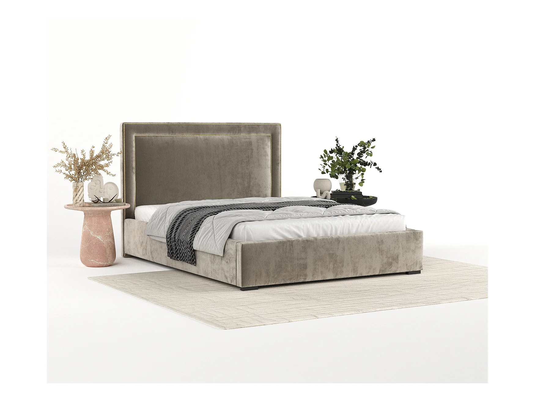 Polsterbett Noto - 140 x 200 cm - Samtstoff - beige