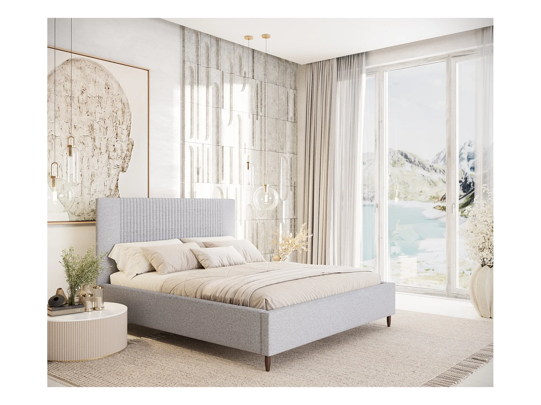 Polsterbett Mija - 160 x 200 cm - Chenille-Stoff - hellgrau