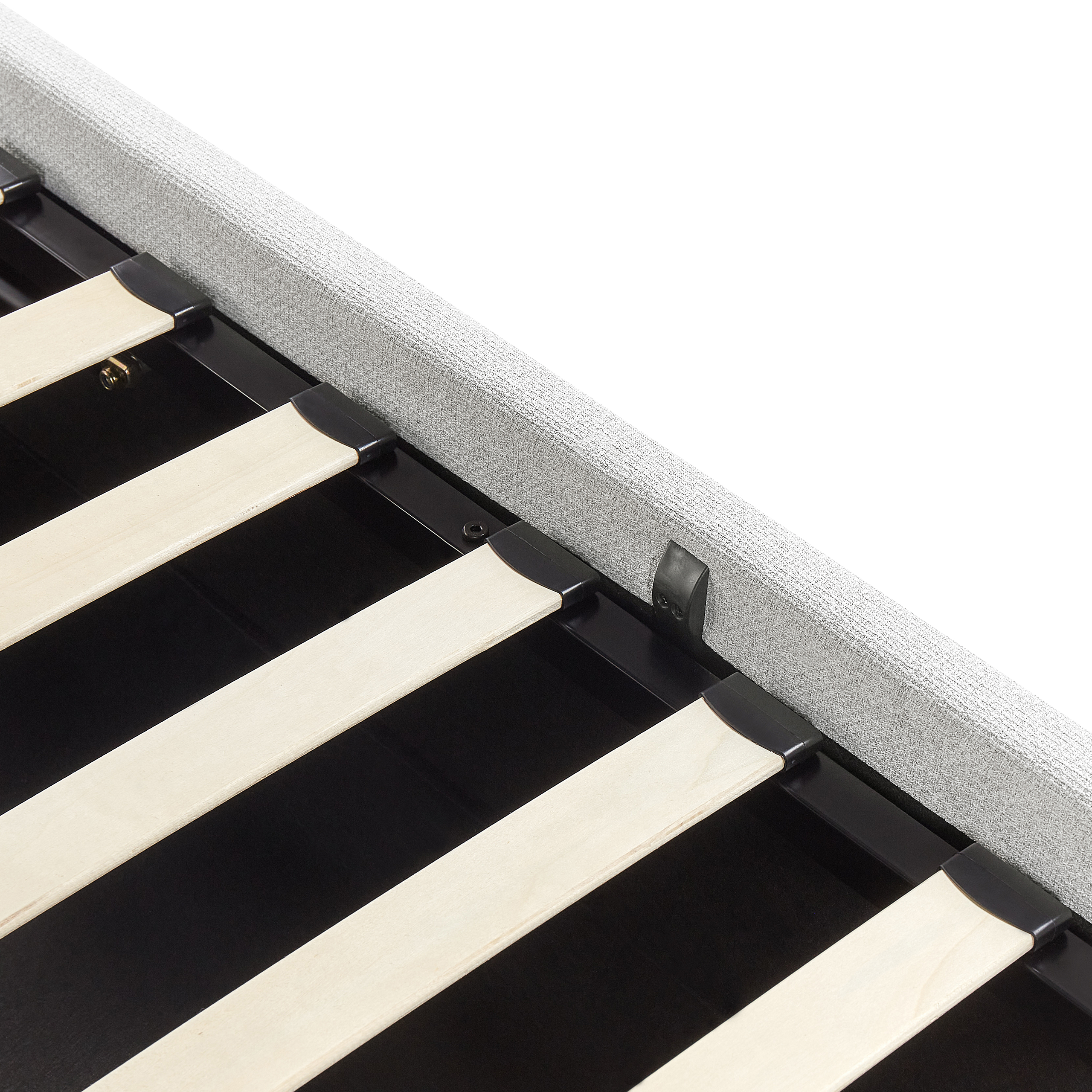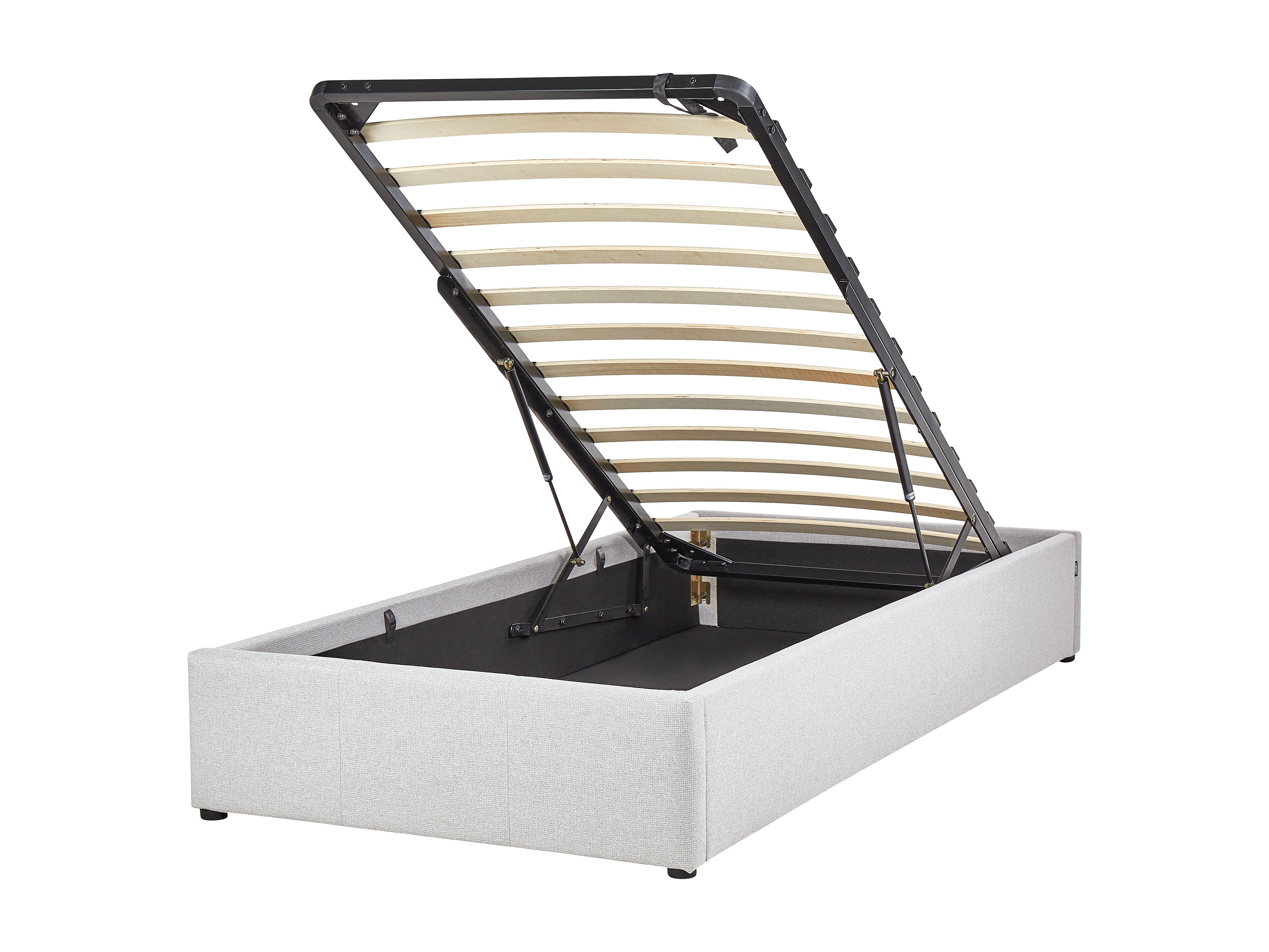 Polsterbett helles Grau mit hochklappbarem Lattenrost 90x200cm Bettkasten Dinan