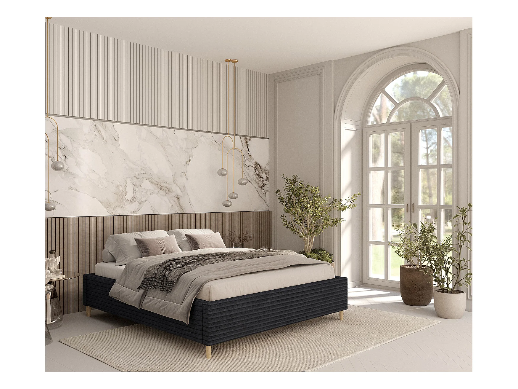 Polsterbett Cape Cod - 120 x 200 cm - Samtstoff - schwarz