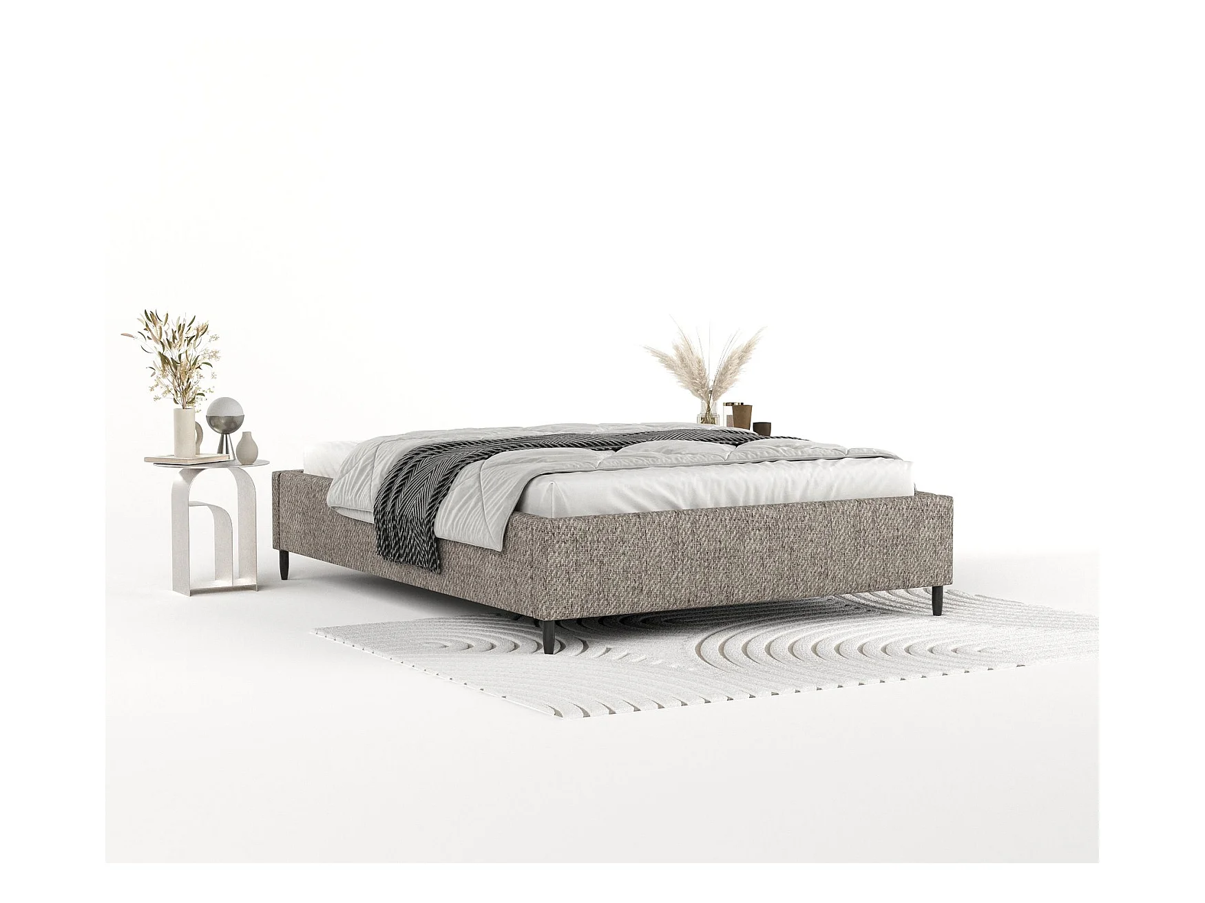 Polsterbett 200x200 - Holzlattenrost - braun Bouclé - CLOUDY LOW
