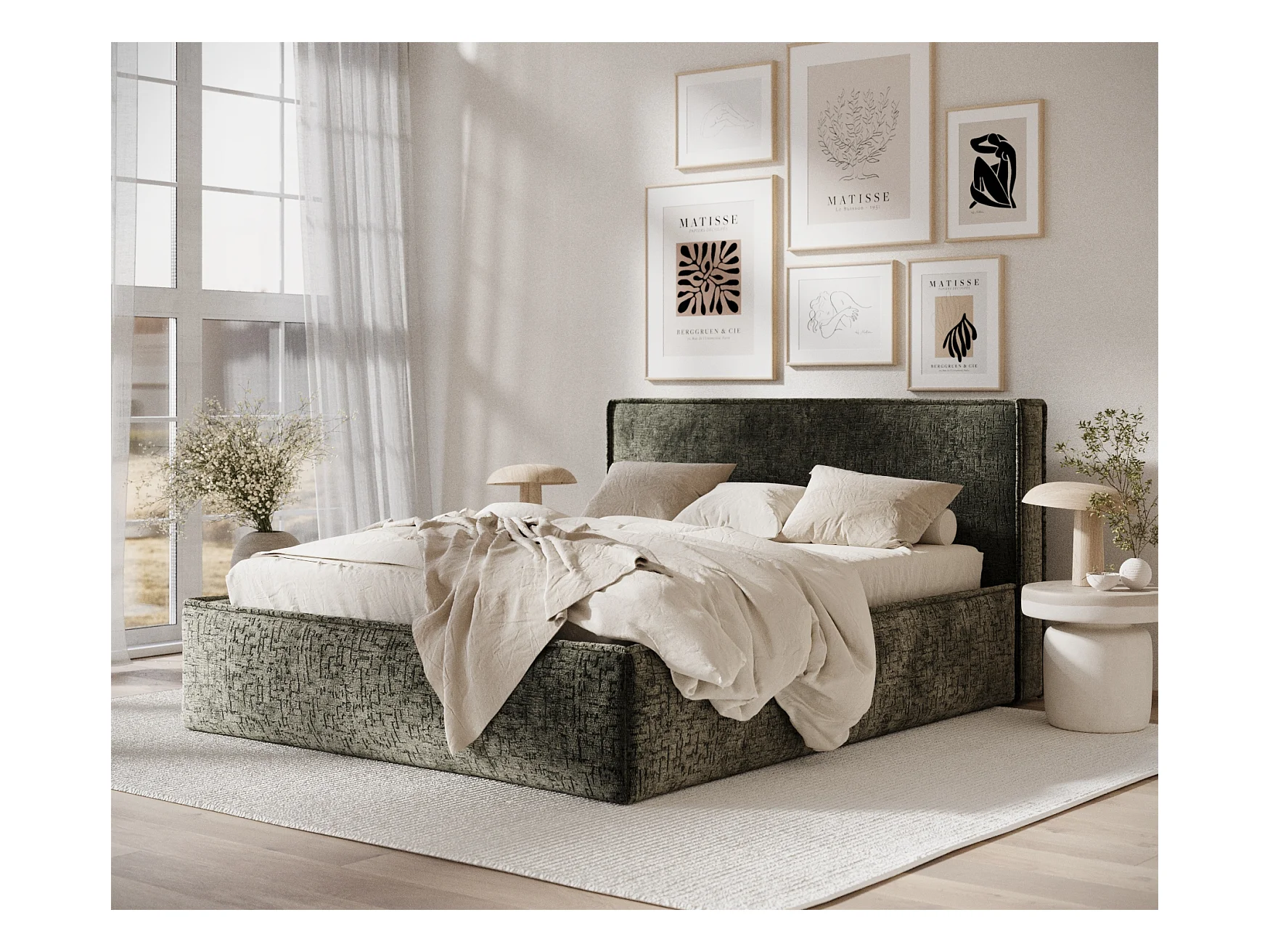 Polsterbett 180x200 mit Chenillebezug und Bettkasten – Dunkelgrün – TOGENTS