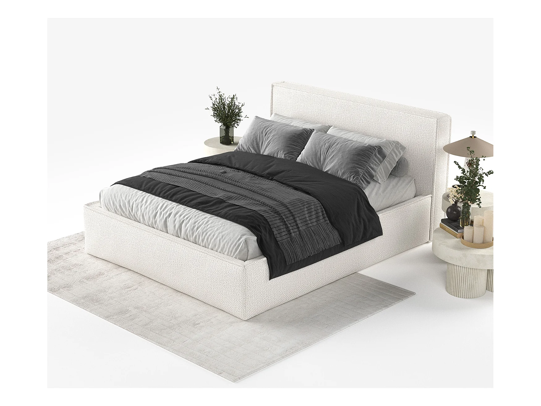 Polsterbett 140x200 mit Chenillebezug und Bettkasten – Hellbeige – TOGENTS