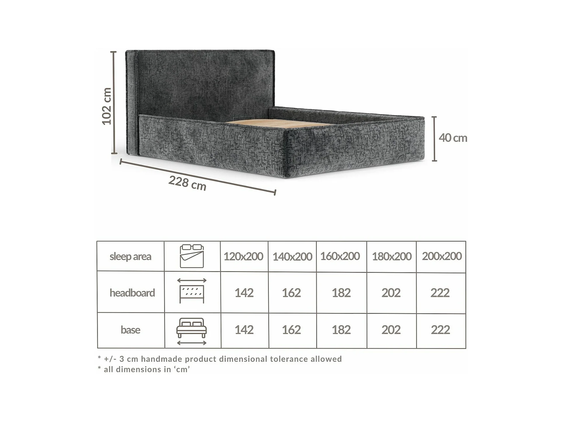 Polsterbett 160x200 mit Chenillebezug und Bettkasten – Dunkelgrün – TOGENTS