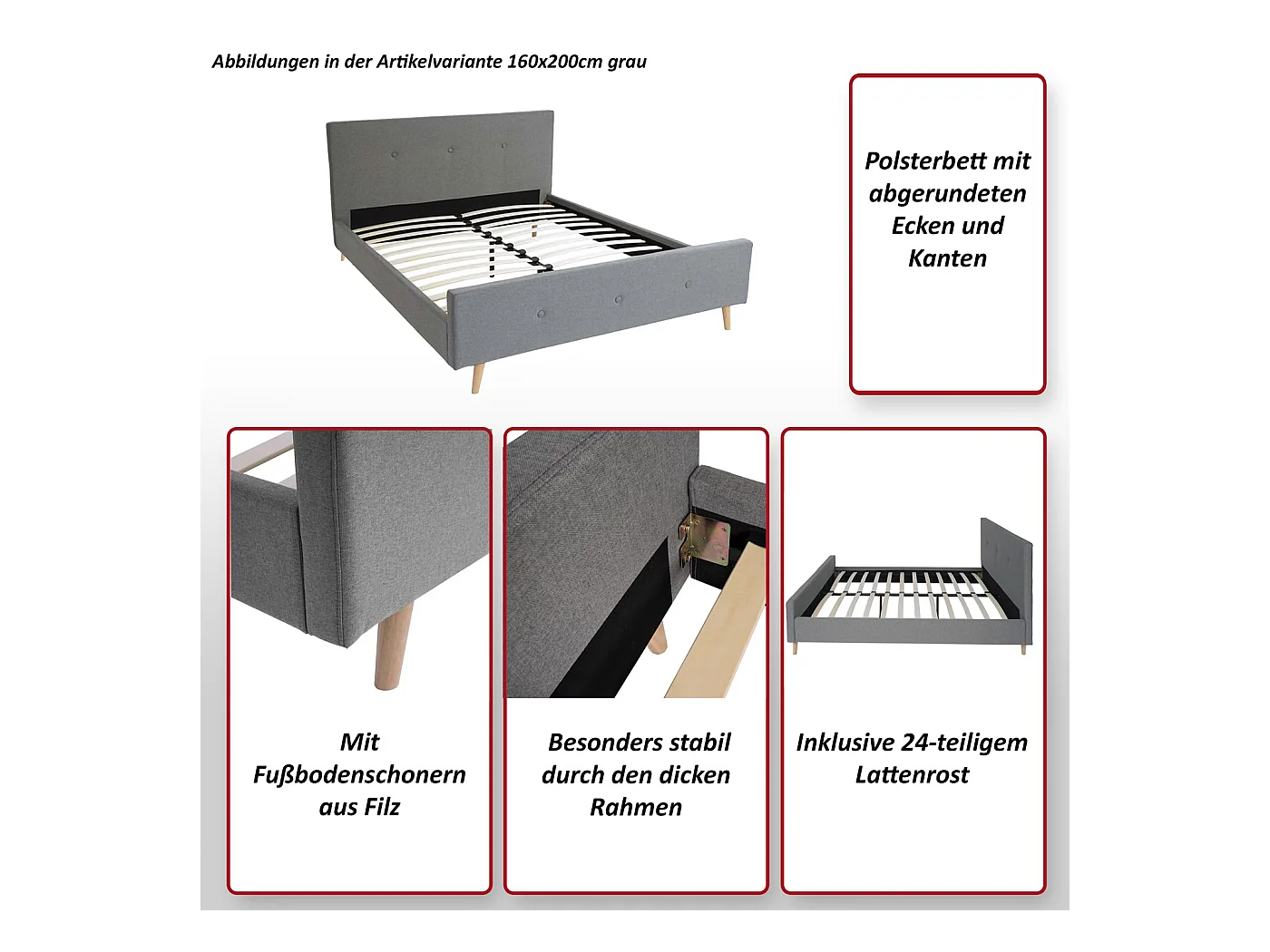 Polsterbett MCW-J98 + Lattenrost 180cm, 180x200cm grau
